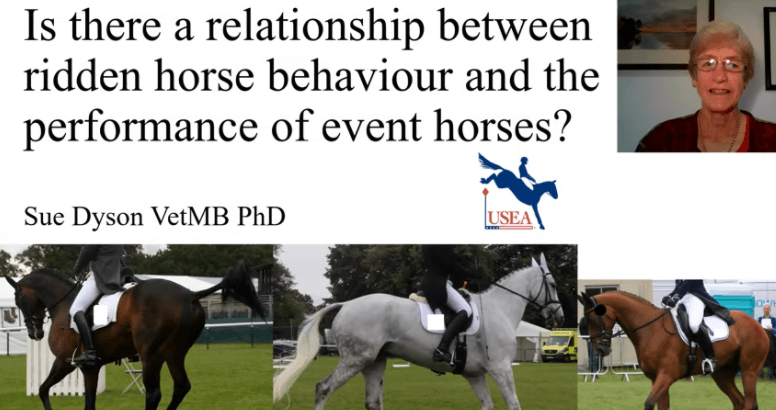 Take a look at Dr. Sue Dyson's video that was presented at the 2021 USEA Annual Meeting & Convention. Dr. Sue Dyson specializes in the investigation of lameness and poor performance throughout her carer. She developed the Ridden Horse Pain Ethogram (RHpE) to justify our social license to compete. An ethogram is a series of behaviors each with strict definitions. The Ridden Horse Pain Ethogram (RHpE) was developed by the comparison of lame and non-lame horses and comprises 24 behaviors, the majority of which are at least 10 times more likely to be seen in lame versus non-lame horses.