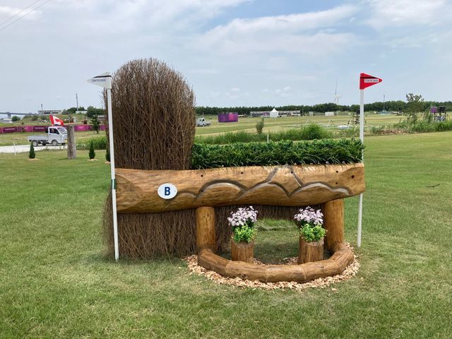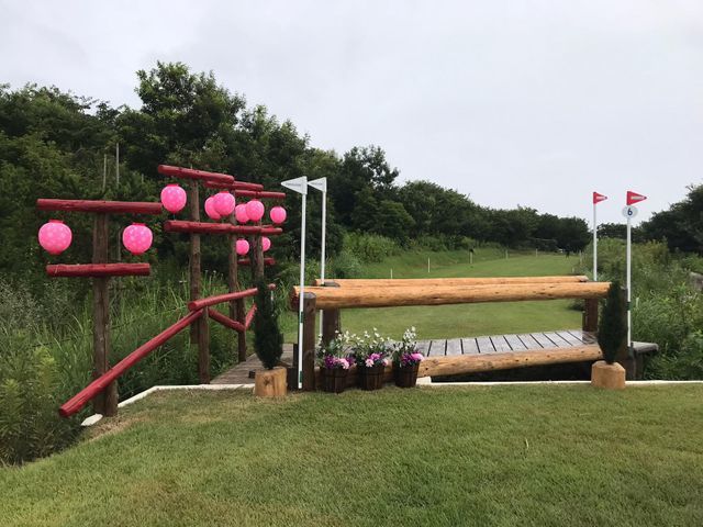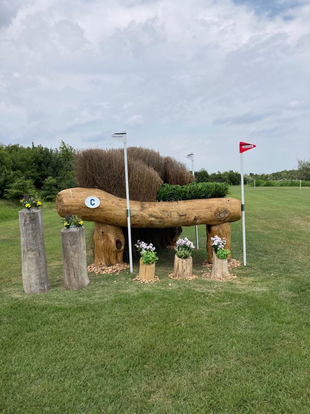The first water - The Sanctuary at 5abc - comes quickly after the Lakehouse at 4, and is a serious test this early on in the course, as British Olympian Gemma Tattersall noted in her EquiRatings interview with Nicole Brown. A large log on the edge of the water (5ab) is followed by a skinny, decorative “fish” in the water itself (5c).