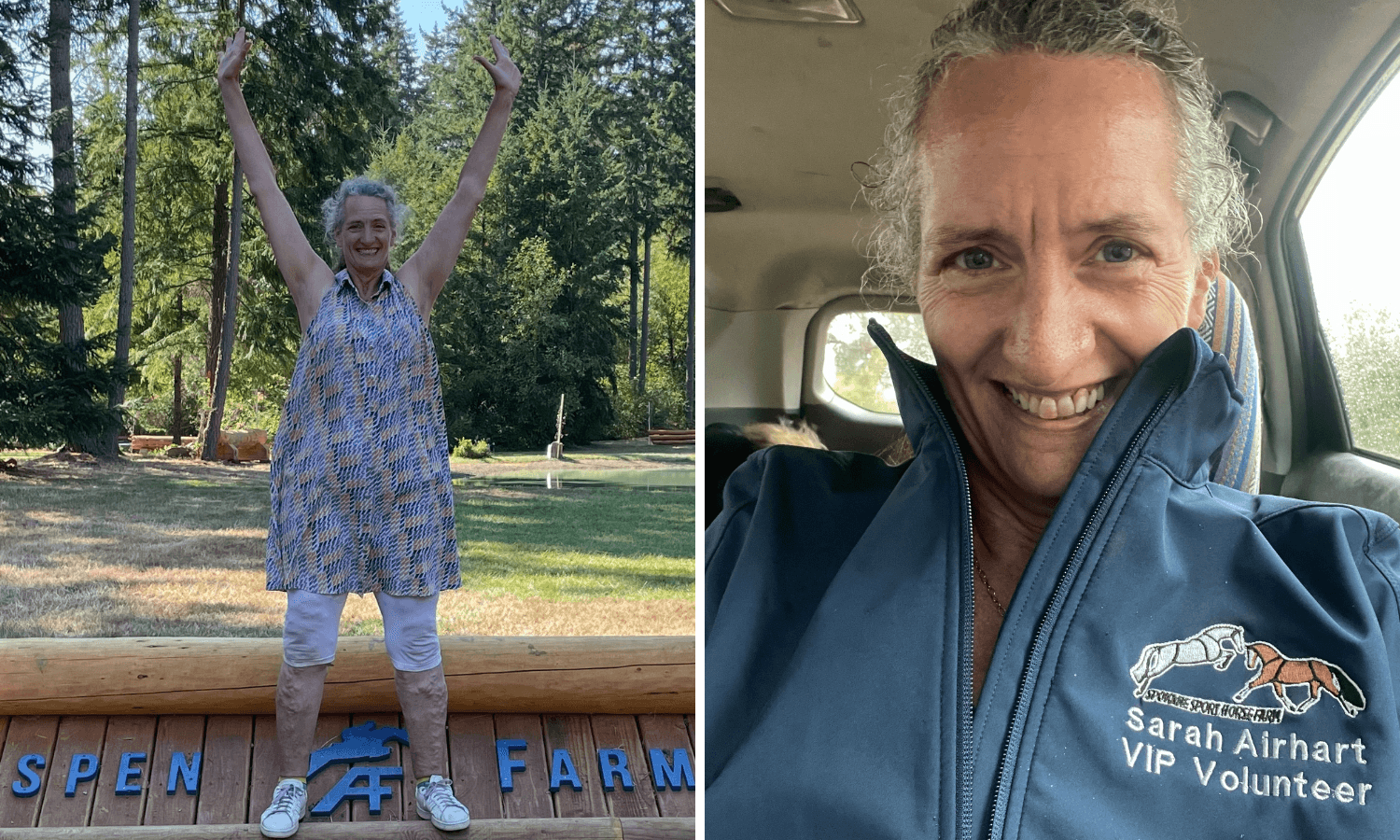 She competed in the sport until she came to the Unites States at 18 to work at a summer camp in San Francisco leading trail rides. From there, she met her husband, Jason Airhart, and started a family and a career in early childhood development, leaving horses behind for 40 years.