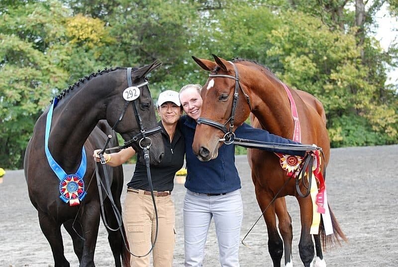 Terri Impson (pictured on left) handled her and Kem Courtenay's Hanoverian/Thoroughbred mare Summer Solstice to the Grand Championship, while Lauren Seitz (pictured right) and her Oldenburg mare Just About Perfect claimed Reserve Championship honors. Emily Daily photo.