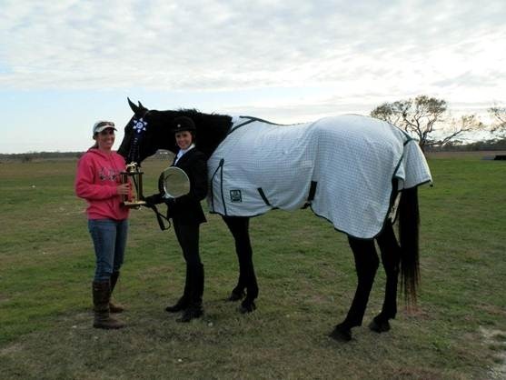 Show Organizer Kristy Limon presents Esther Dauben with the award for Best Score Overall at the Candy Cane Eventing Derby (Photo Courtesy of Kristy Limon)