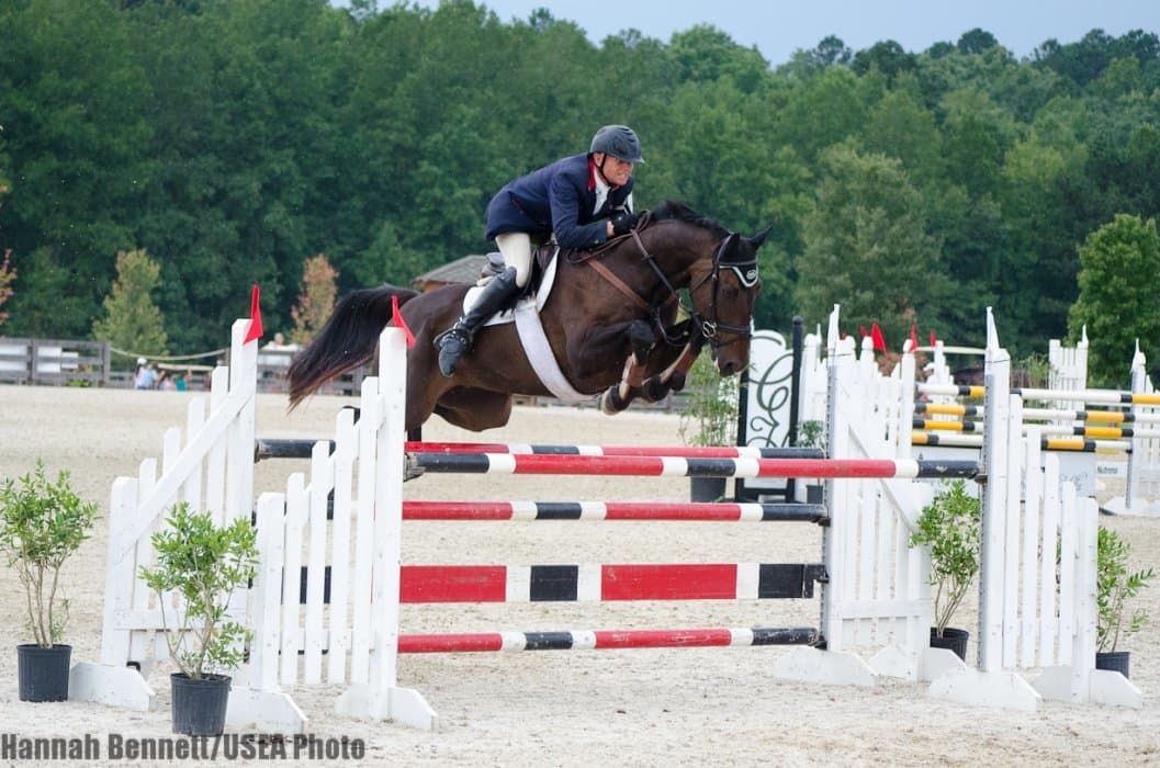Logan Elliot and Cady O’ Daly Michael are chasing their second consecutive national championship title. They were the Beginner Novice Junior division winners last year after working together for only five months. With another year of experience under their belts, they are vying to take home the Novice Amateur title as well. After a clear cross-country round today, they are in good standing to do so with a rail in hand. Second place currently belongs to last year’s Beginner Novice Amateur champions Sandra Holden and Cano Cristales, and Elisabeth Lee and Free Verse sit just one point behind them in third.