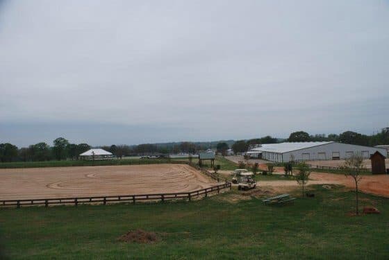 Texas Rose Horse Park plays host to equestrian activities of many kinds. The facility has 350 12x12 permanent stalls and room for 350 more. With three outdoor arenas with all-weather footing and two warm-up arenas, plus a large indoor arena, there is space for everyone to ride. The Capt. Mark Phillips designed cross-country course (pictured right) features some of the best sandy footing in the country. Other amenities include RV hook-ups, an on-site saloon, and a fully stocked fishing pond. Watch a video about Texas Rose.