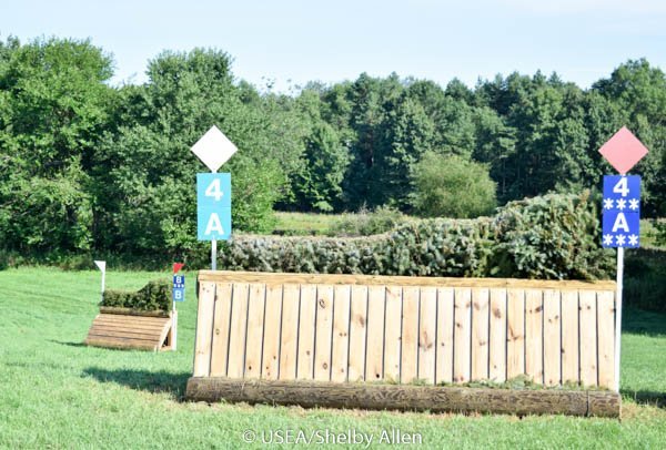 They will keep right on with fence four, a palisade brush jump, followed by an incredibly steep slope to an angled brush fence at 4b.
