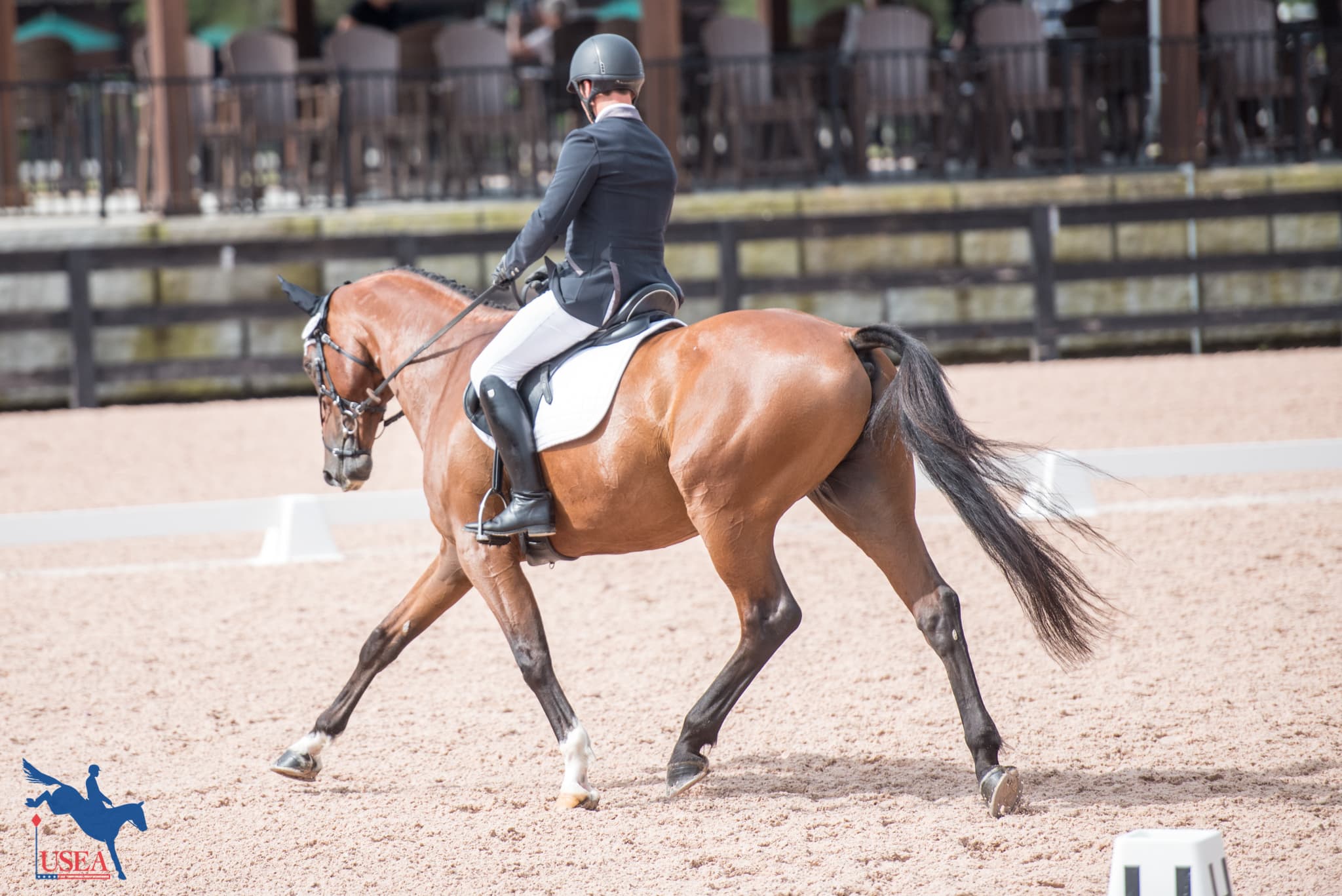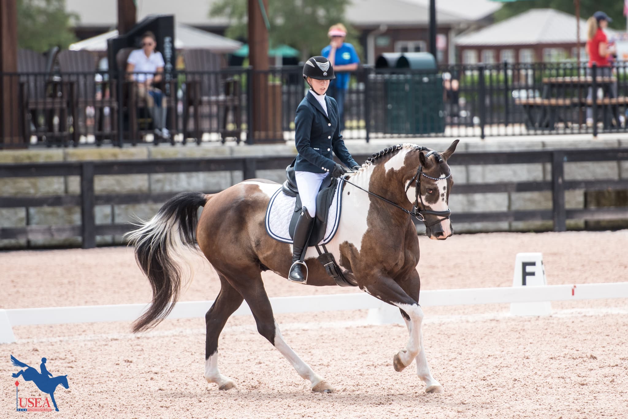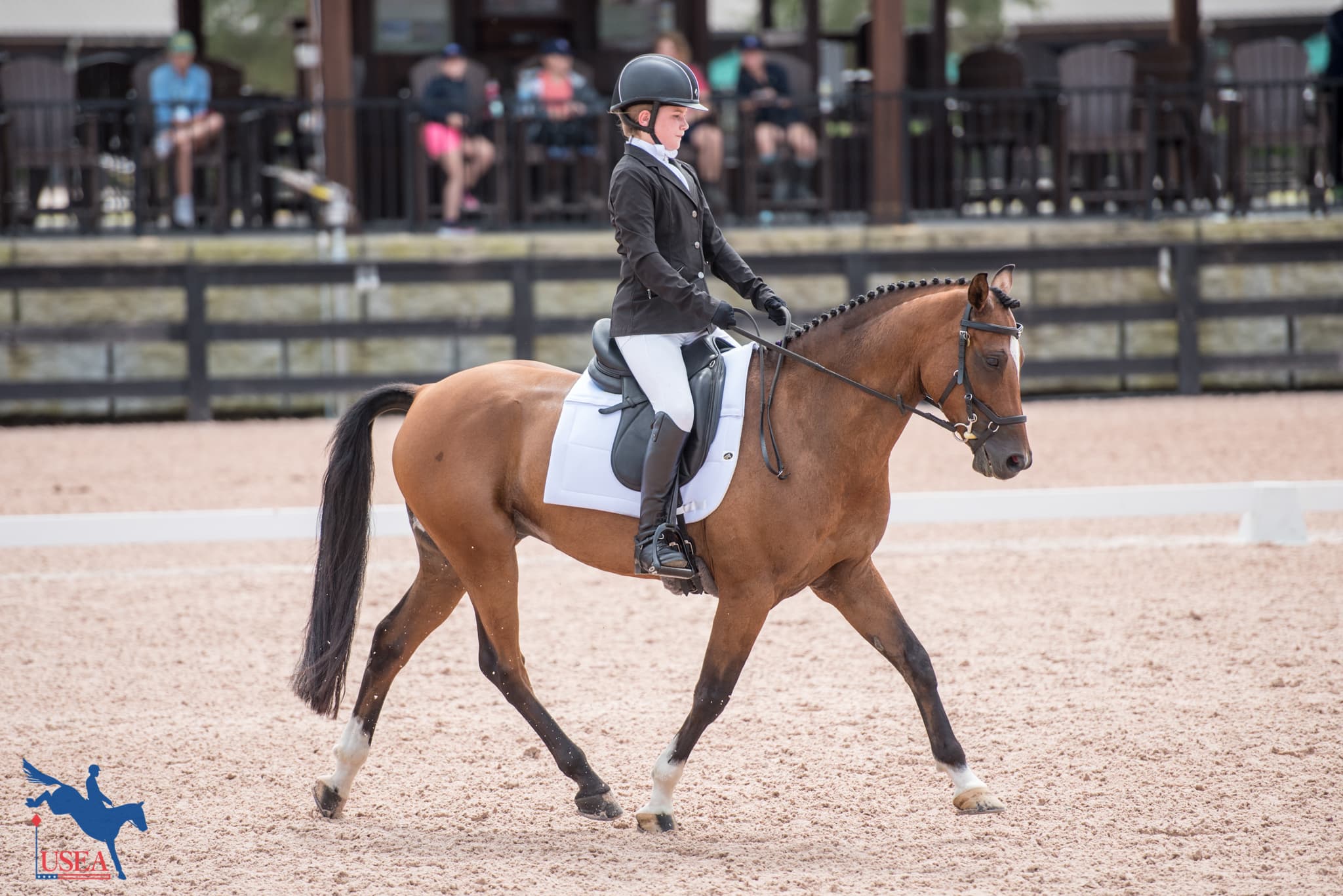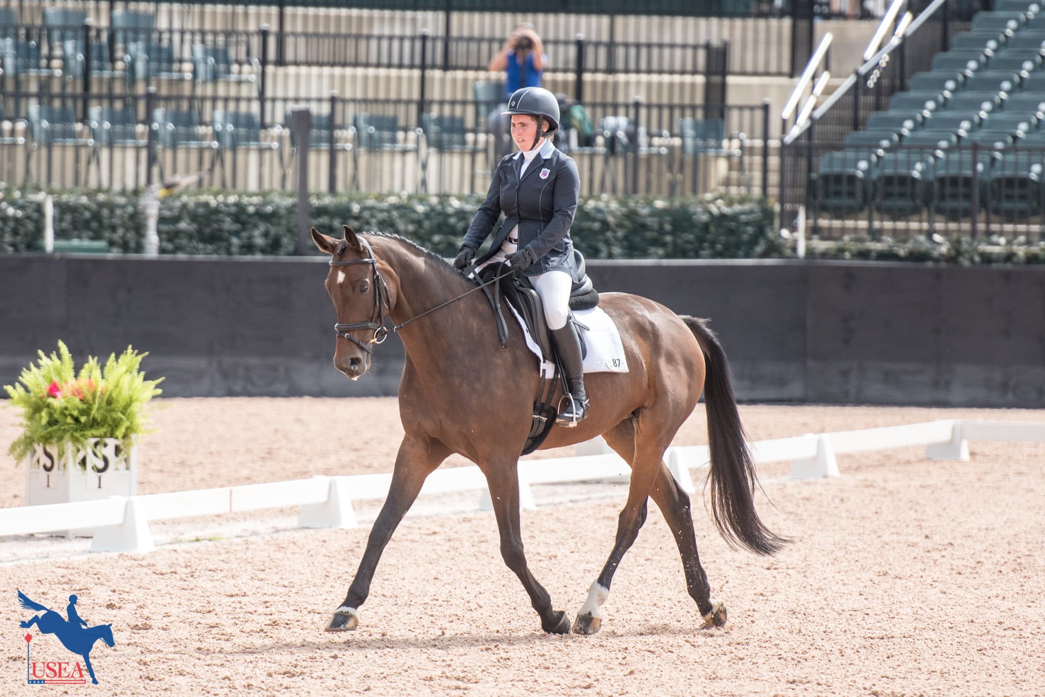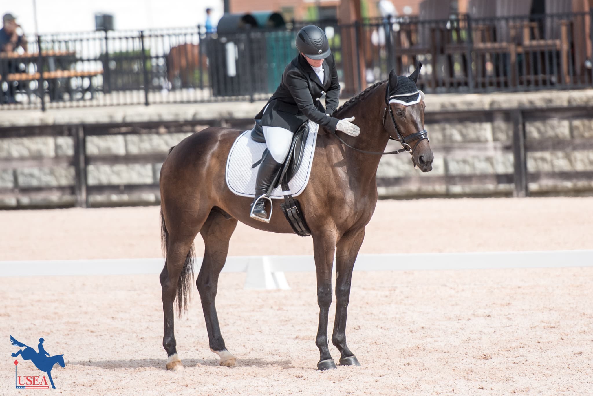 Last year Mia Petersen and Parc Cooley finished in ninth place in the Preliminary Amateur division at the AEC, and this year they have returned looking for an even better ribbon. Petersen and the 10-year-old Irish Sport Horse gelding (Cavalier Royale x Wellfields Allegro) scored a 31.7 to sit atop the 19-competitor Preliminary Amateur division, the first division to finish with their dressage phase at the 2017 AEC.