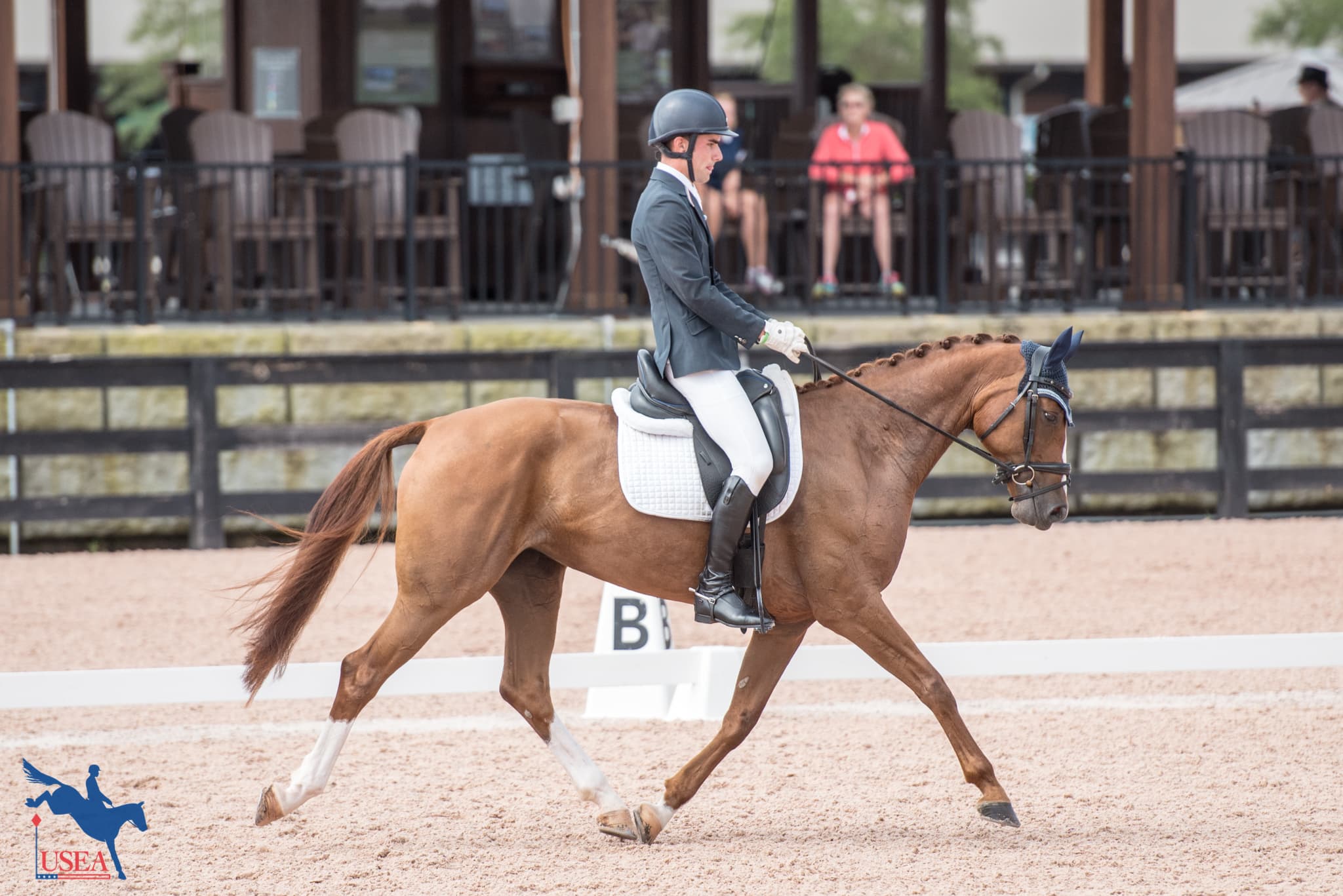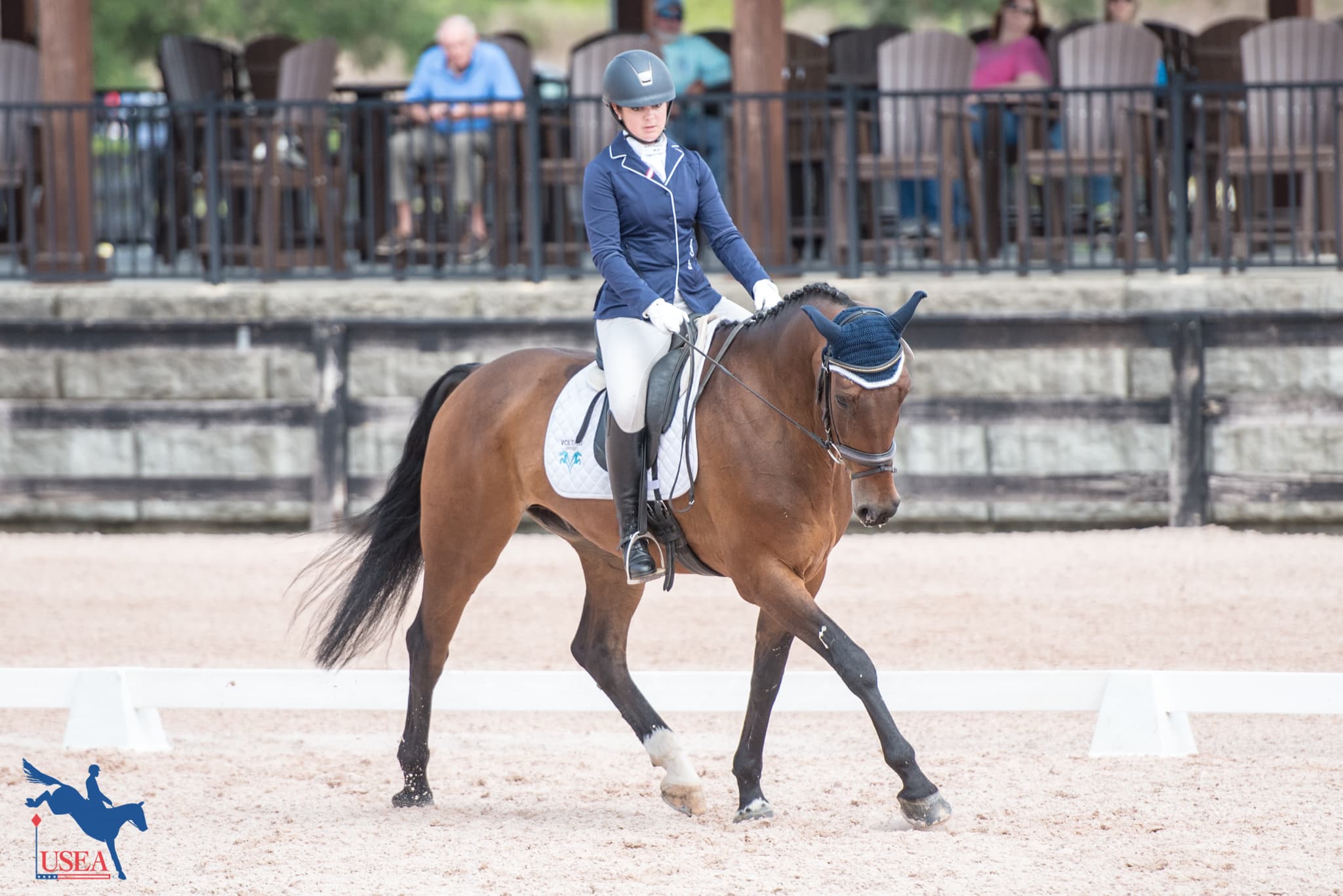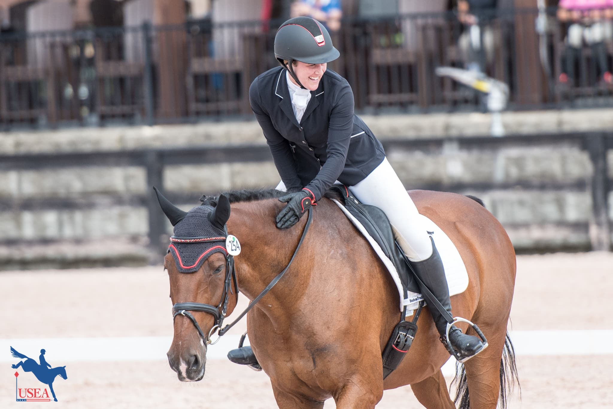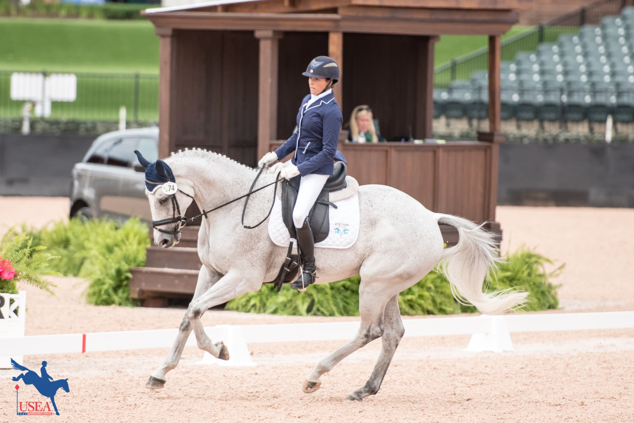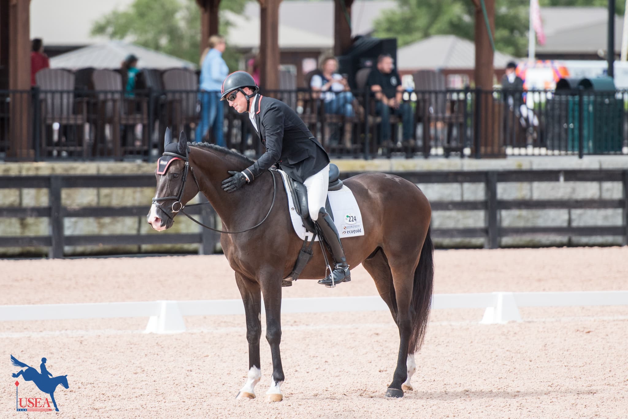 Last year Mia Petersen and Parc Cooley finished in ninth place in the Preliminary Amateur division at the AEC, and this year they have returned looking for an even better ribbon. Petersen and the 10-year-old Irish Sport Horse gelding (Cavalier Royale x Wellfields Allegro) scored a 31.7 to sit atop the 19-competitor Preliminary Amateur division, the first division to finish with their dressage phase at the 2017 AEC.