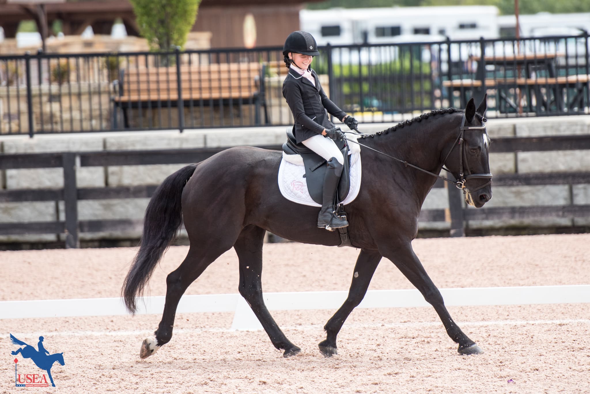 Madeline Hartsock proved that age doesn’t matter as the 12-year-old took on some older competitiors to come out on top in the Professional’s Choice Junior Training division. Riding her own 8-year-old German Riding Pony gelding, Prinz S.W. (PR. H. Principal Boy x St. Pr. St. Hauptstutbuch Bienchen), Hartsock scored a 25.0 for the lead. “He definitely felt a lot better,” said Hartsock of her test with Prinz. “He didn’t break in his lengthenings, and felt more connected than normal.”