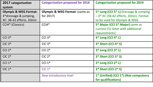 The new competition structure has adapted to the current global level of the sport, supporting the implementation of the Olympic strategy. It is also part of the continued effort to address risk management and the cost effectiveness of the discipline together with encouraging the development of the number of nations participating in eventing.