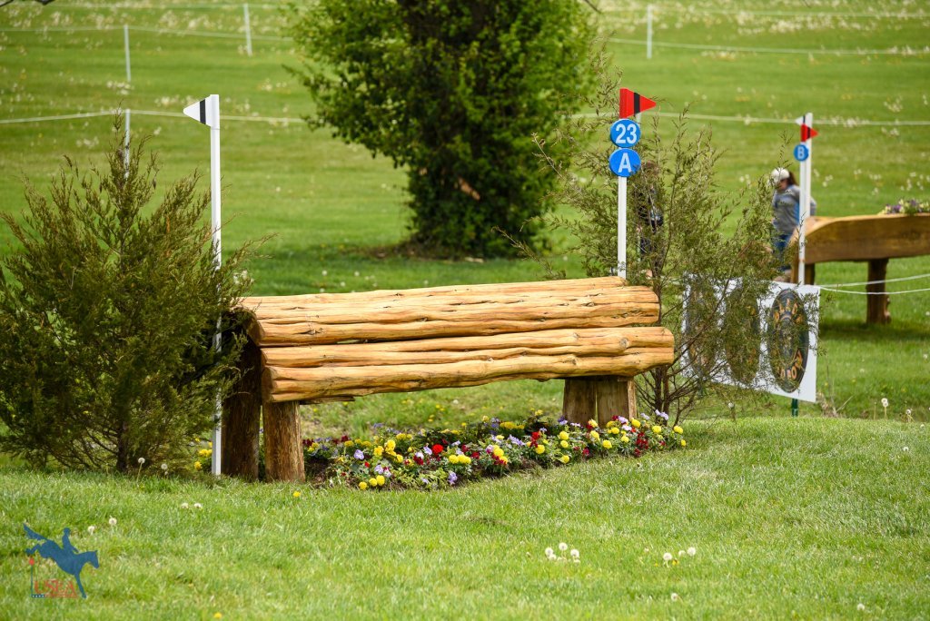 The Picnic Table at fence 11 is the only fence that lies between the combination of fences 12 and 13AB at Pete’s Hollow. Terrain really comes into play here as riders gallop down into the hollow over the table at 12 before taking the direct route up the mound over a skinny log before bending down and out over a brush.