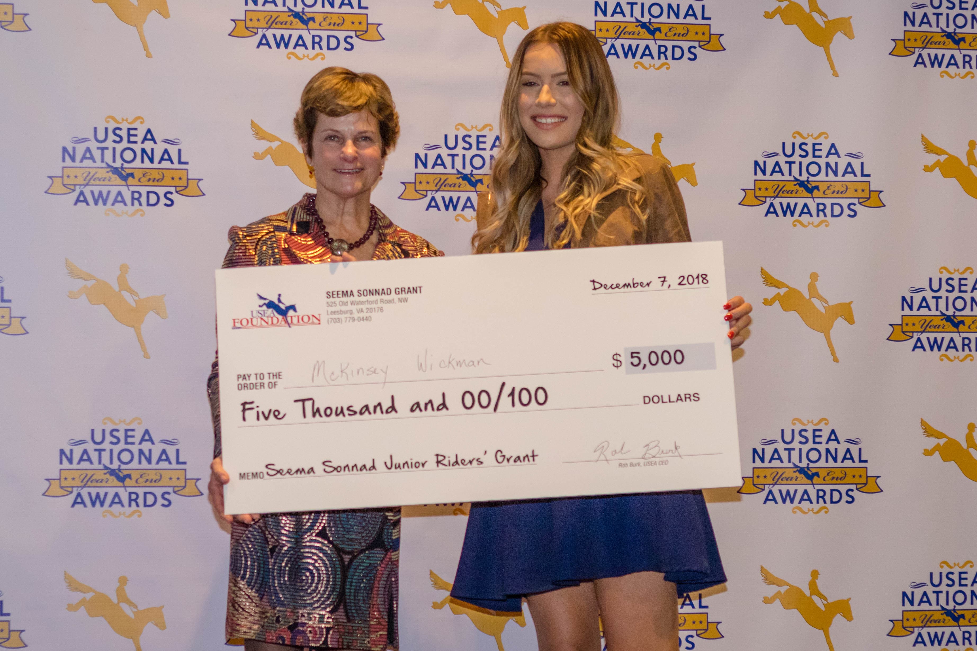 Former USEA President Diane Pitts presented the USEA Foundation Grants. The $10,000 Essex Grant was awarded to Zoe Crawford (Reddick, Florida), the $5,000 Amy Tryon Grant went to Abby Dubrawski (Duxbury, Massachusetts) and McKinsey Wickman (Prosper, Texas) was awarded the $5,000 Seema Sonnad Grant. The $5,000 Roger Haller Course Designer's Grant was awarded to Marc Grandia (Sultan, Washington) and the $5,000 Roger Haller Judge's Grant was awarded to Wendy Wergeles (Los Alamos, California). Ryan Wood (West Grove, Pennsylvania) was awarded the inaugural Captain Mendivil-Yucupicio Award for $5,000.