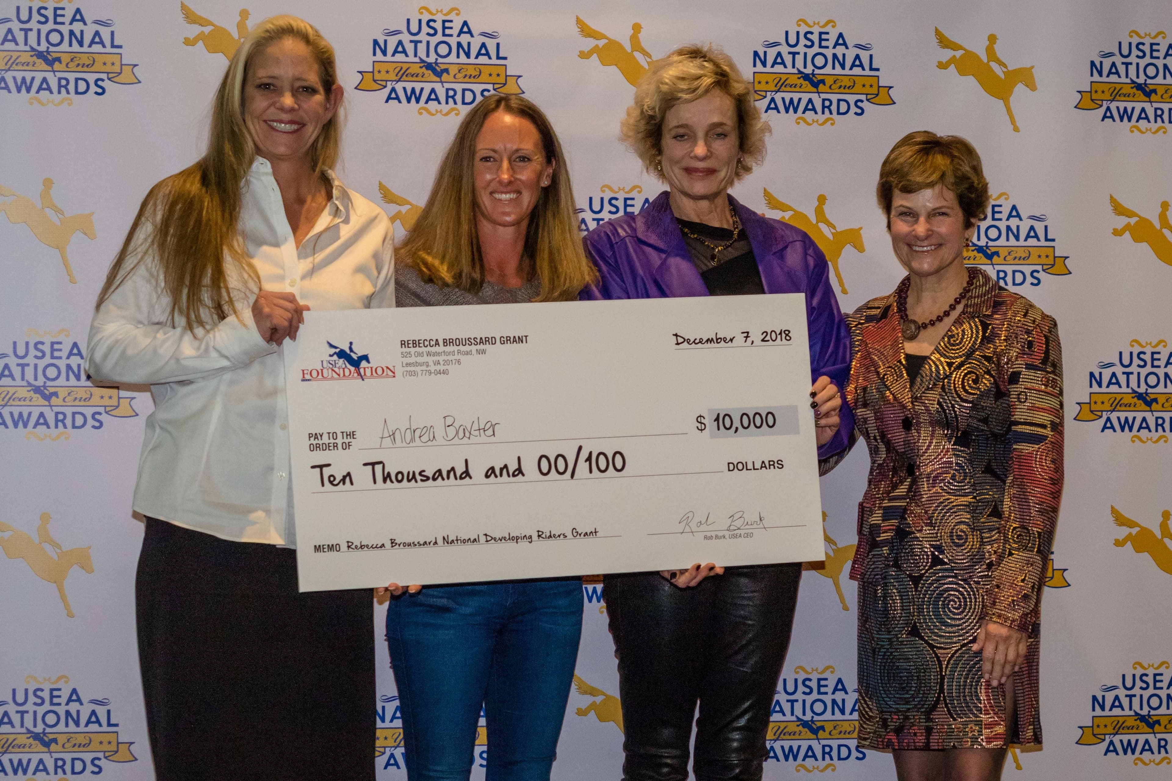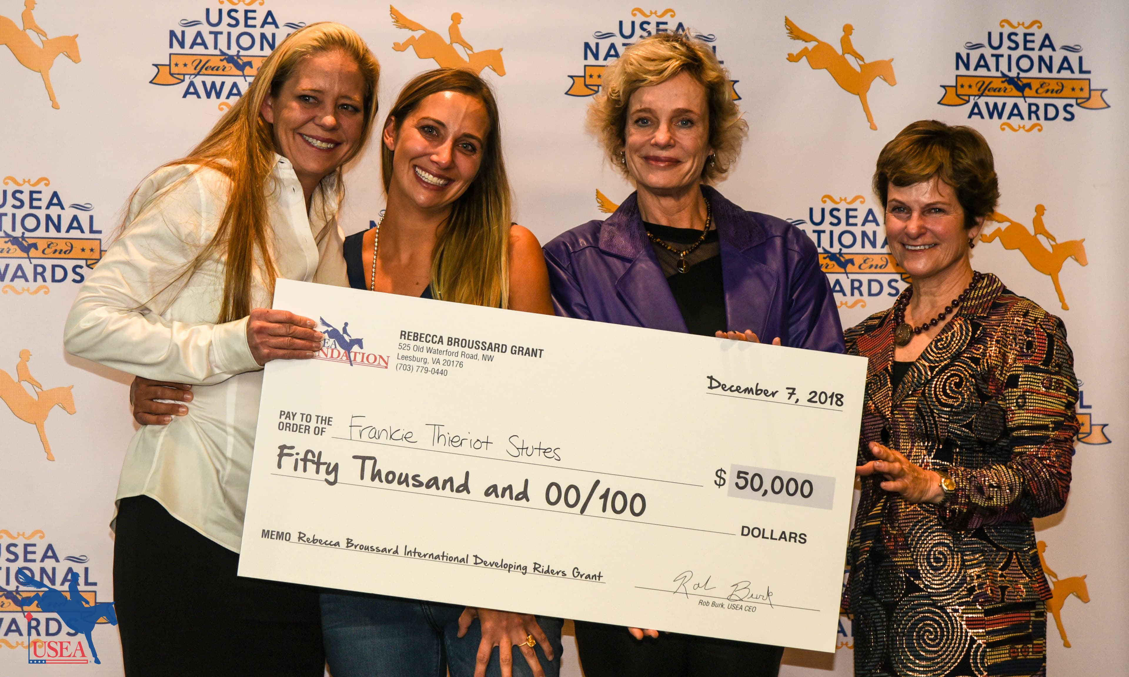 Sarah and Rebecca Broussard presented Andrea Baxter (Paso Robles, California) with the $10,000 Rebecca Broussard National Developing Rider Grant and Frankie Thieriot Stutes (Occidental, California) with the $50,000 Rebecca Broussard International Developing Rider Grant.