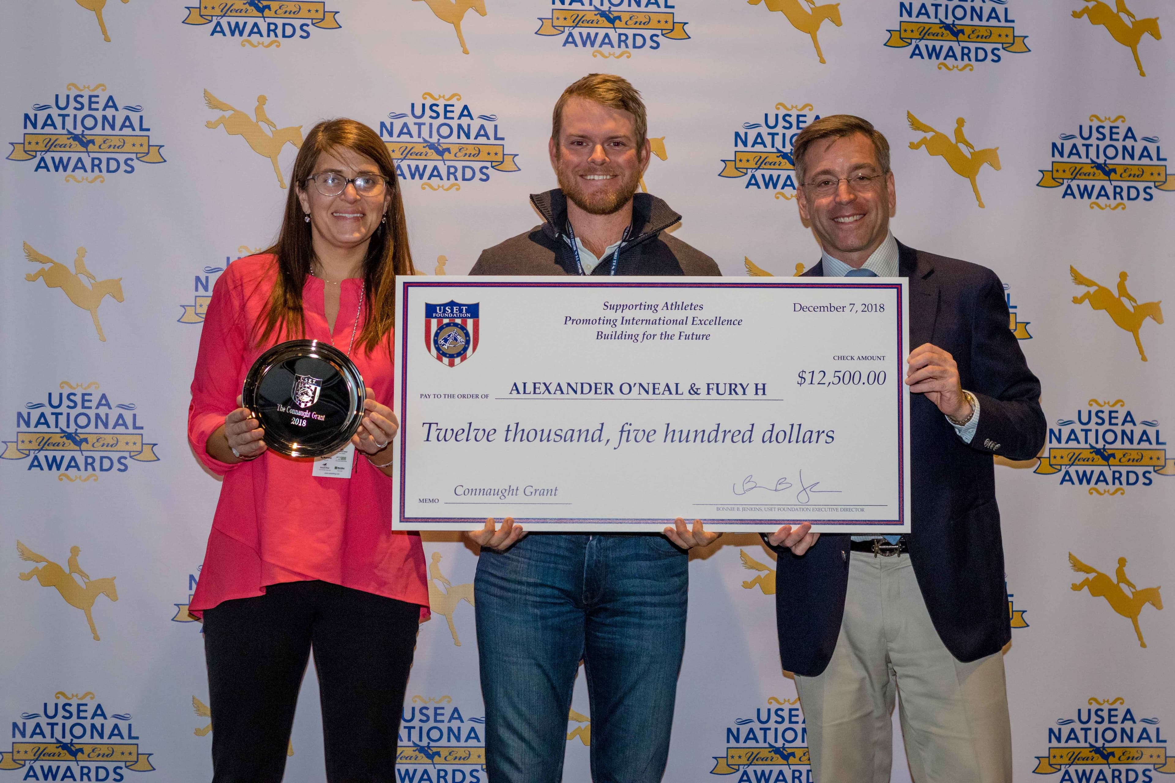 The Connaught Grant, now in its third year is designed for a horse competing at the CCI1* or CCI2* level who shows potential to one day be on the U.S. Team and is presented in memory of Bruce Duchossois. Jim Wolf from the USET Foundation presented $12,500 each to Big Berry (Road To Happiness x Boney Kelly), an 8-year-old Irish Sport Horse gelding owned by Alexa Gartenberg and ridden by Matt Brown, and Fury H (San Remo x Miss Marple), an 8-year-old KWPN gelding owned by Sally Cox and ridden by Alexander O'Neal.