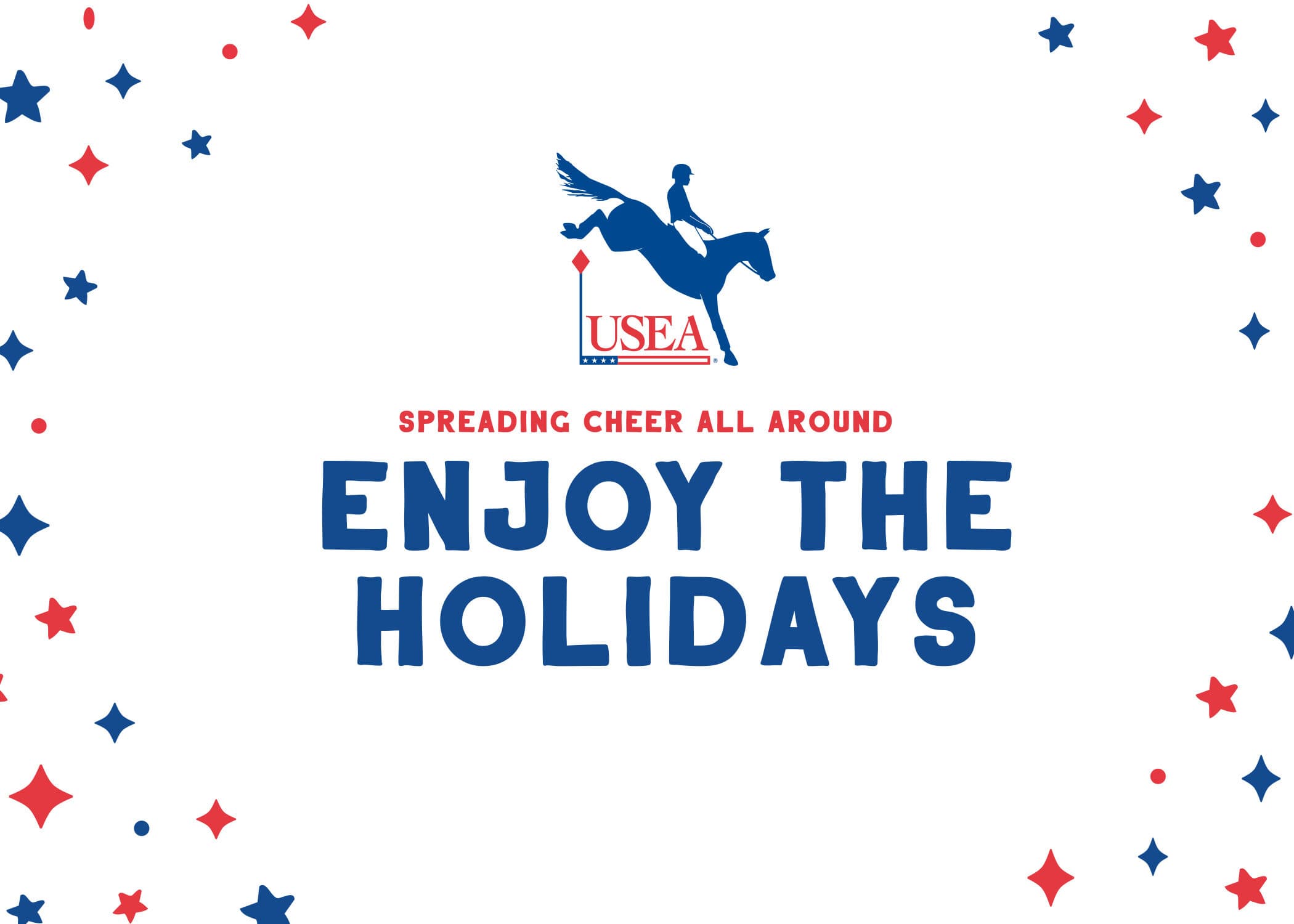 The USEA office will close at 12:00 p.m. on Monday, December 23 and will remain closed for the Christmas and New Year's holidays from Tuesday, December 24, 2019 through Wednesday, January 1, 2020. The USEA staff will return emails and phone calls as early as possible.