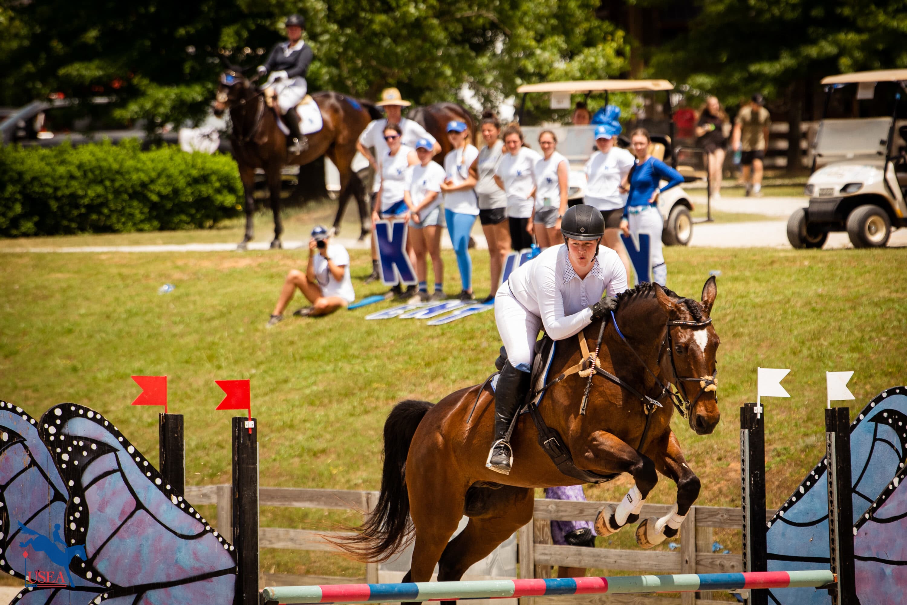The USEA Intercollegiate Eventing Program was established in 2014 to provide a framework within which eventing teams and individual competitors could flourish at universities and colleges across the country. The USEA offers a discount of $25 on annual USEA memberships for current students of universities and colleges registered as Affiliates with the USEA. Many events across the country now offer Intercollegiate Team Challenges where collegiate eventers can compete individually as well as on teams with their fellow students. In Intercollegiate Team Challenges, each rider’s score is multiplied by a coefficient appropriate for their level to account for differences in level difficulty, and then the individual scores are added together to determine the team score. Click here to learn more about the Intercollegiate Eventing Program.