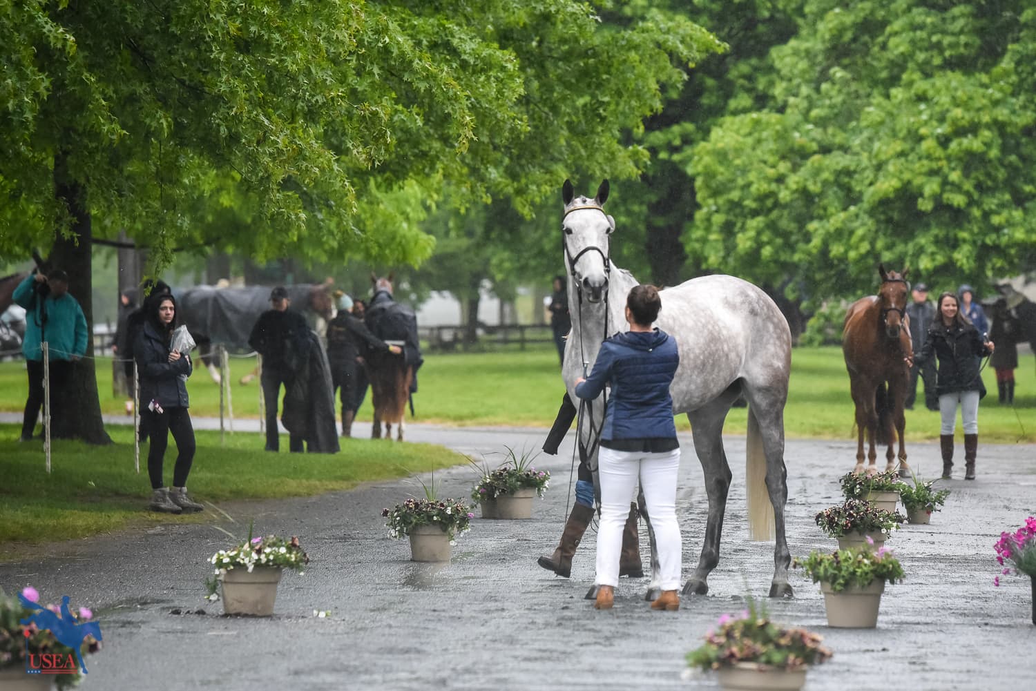 It’s a cold, wet, and windy day at the New Jersey Horse Park in Allentown, New Jersey for the final day of the Jersey Fresh International Three-Day Event. The final horse inspection took place this morning and a total of 26 horses between the CCI3*-L and CCI4*-L came forward to present to the ground jury.