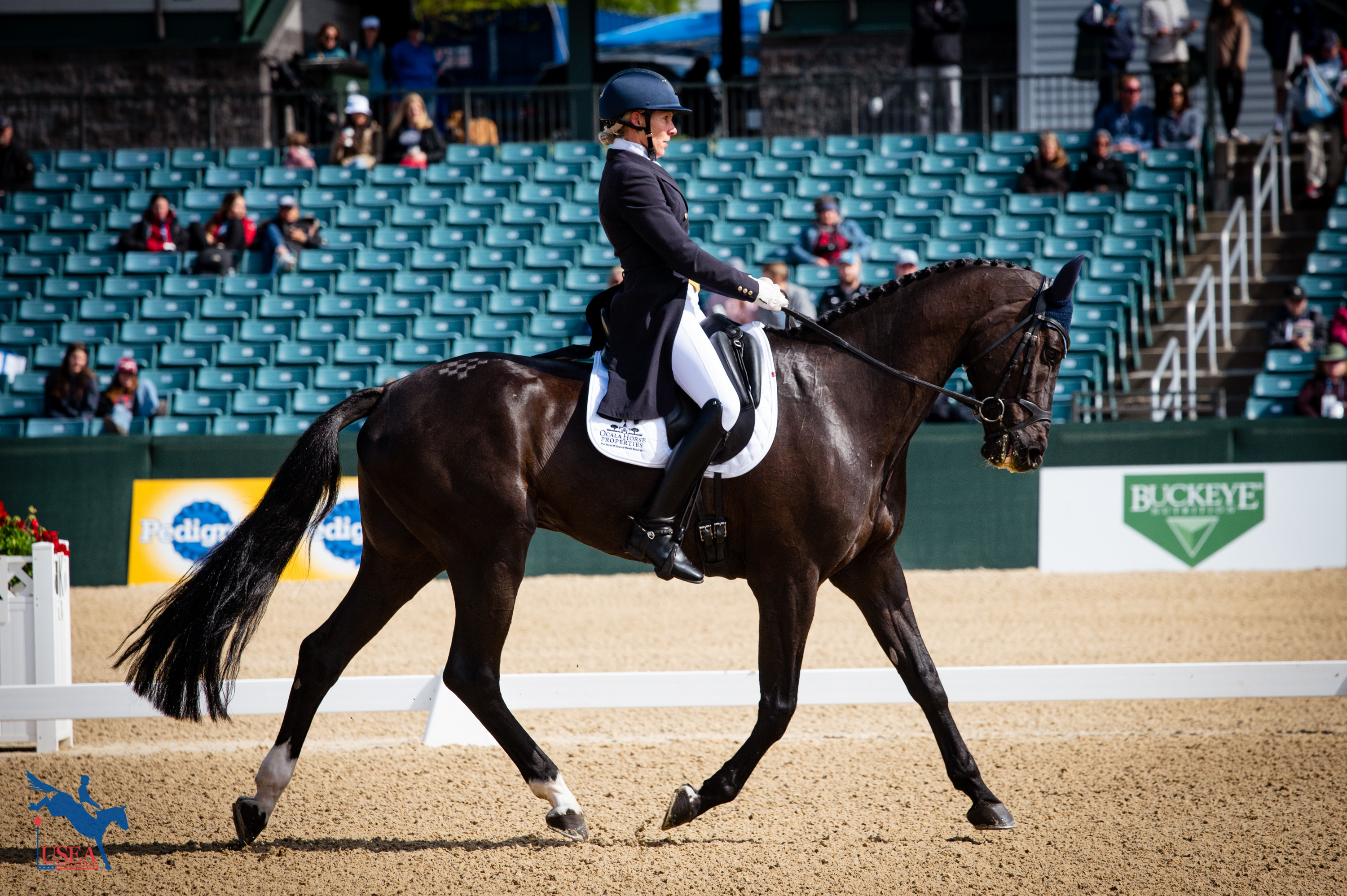 Leading the pack after dressage is Cooley Quicksilver (Womanizer x Kylemore Crystal) an 11-year-old Irish Sport Horse gelding owned by the Monster Partnership and ridden by Liz Halliday-Sharp. Cooley Quicksilver aka ‘Monster’ and Halliday-Sharp set the bar high as the first pair to compete at 8:00 a.m. by earning a 25.7 from the judges. “I’m really proud of him, there were still a few moments that could have been better. But, to be first out today, early in the morning, I’m absolutely thrilled,” said Halliday-Sharp of her leading ride.