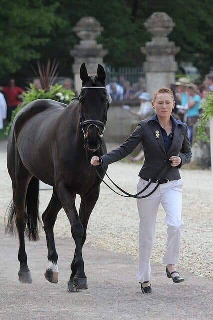 Jennifer Wooten-Dafoe and The Good Witch (owned by Daisy Tognazzini) were one of three U.S. pairs who presented at the first horse inspection today at the Mitsubishi Motors Badminton Horse Trials in England. Ballynoe Castle RM (owned by Carl and Cassandra Segal) ridden by Buck Davidson, and Joan Goswell’s Mandiba, partnered with Karen O’Connor, are the other U.S. contenders. Three Canadians are also competing: Hawley Bennett-Awad (Gin N'Juice), Stephanie Rhodes-Bosch (Port Authority), and Selena O'Hanlon (Colombo). All 84 horses who were presented passed. Badminton website. Katherine Erickson photo. Check out the slideshow! (Hint: Click on “Show Info” in the upper right-hand corner to see who’s who.)