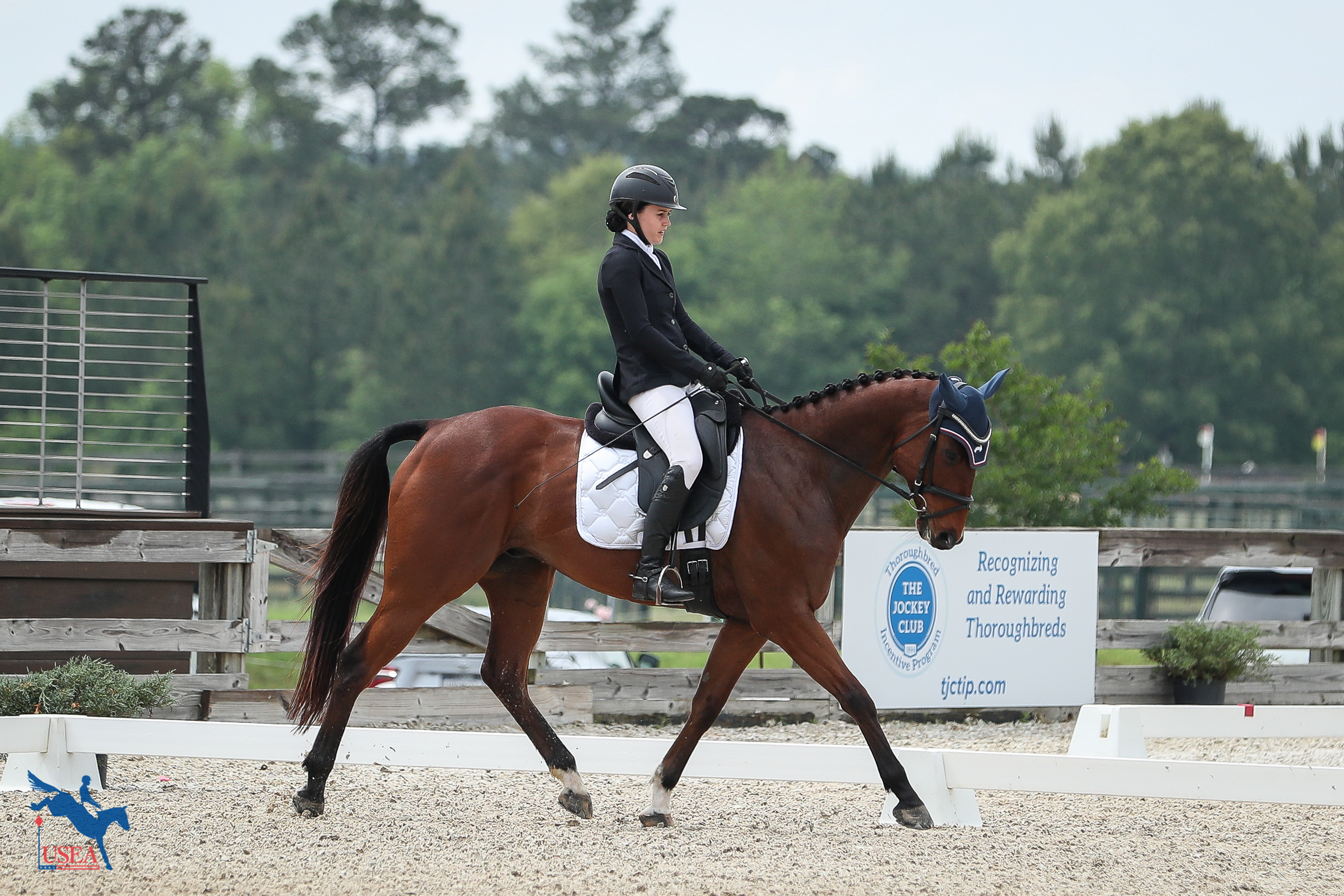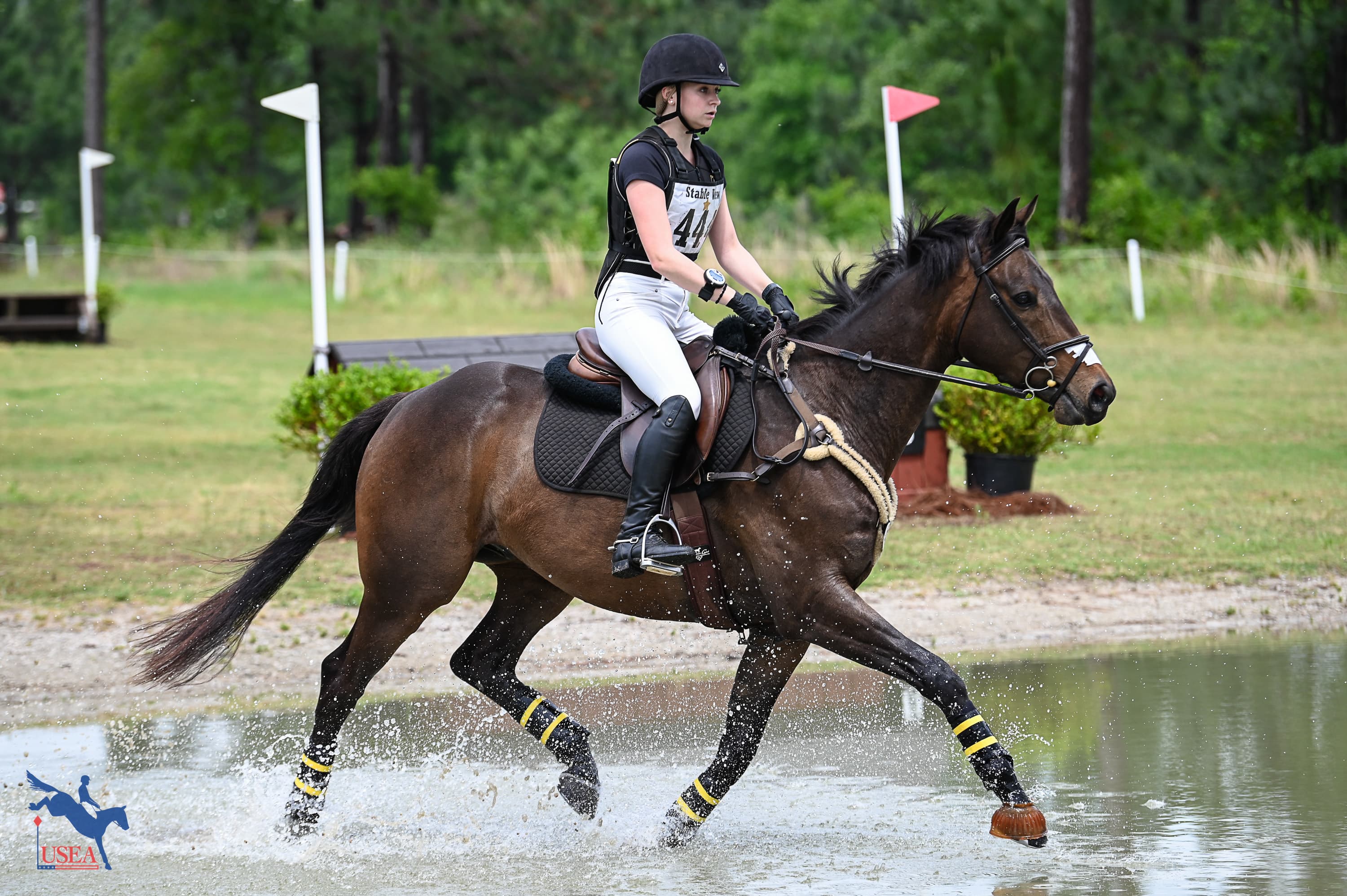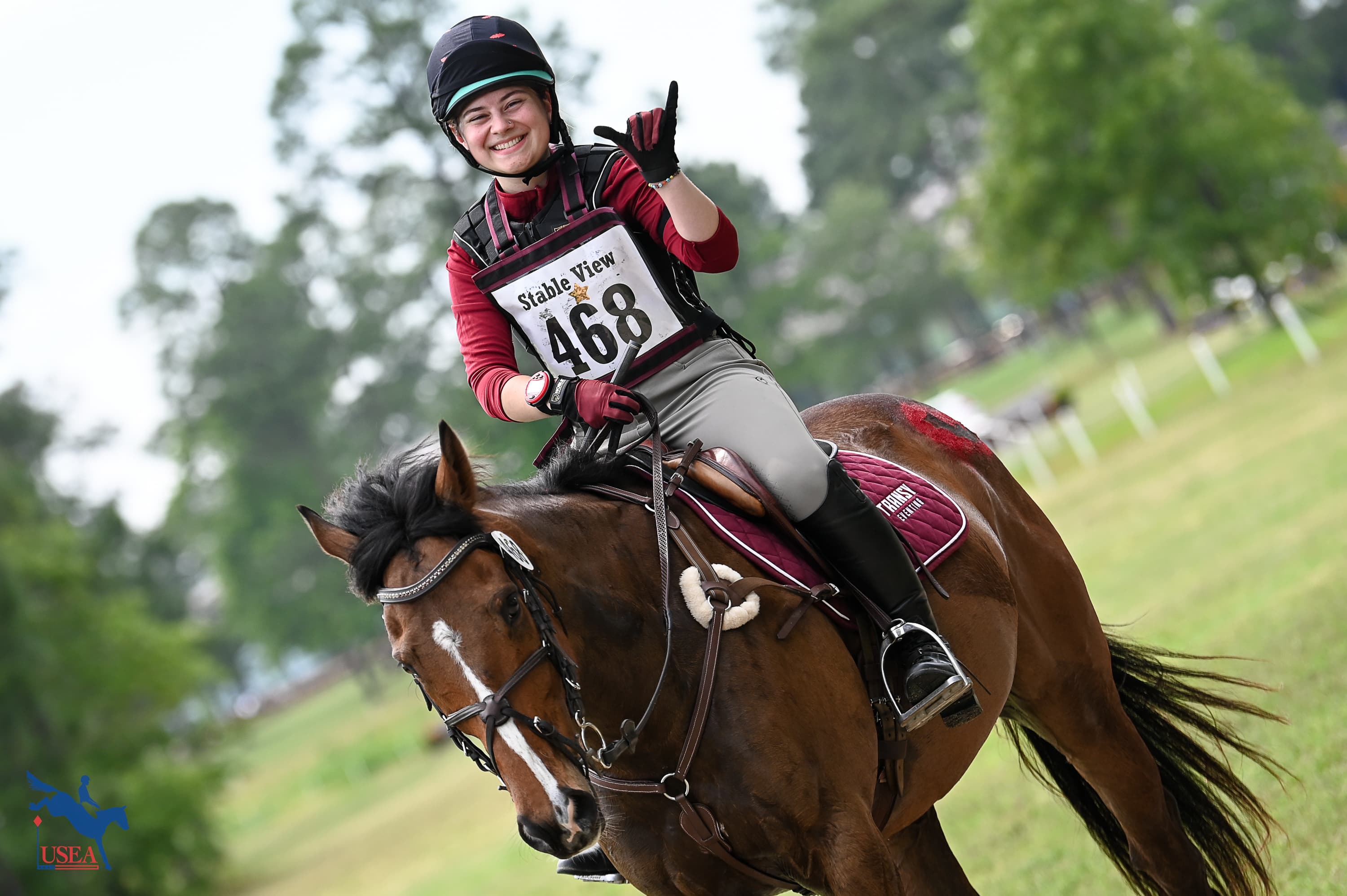 McGown is competing with her 14-year-old Thoroughbred gelding, Curious George (Greeley’s Galaxy x Avie’s Jill), in the Training division this weekend. Originally sourced for the New Vocations Pony Club Challenge, Curious George has been in McGown’s family since 2017 and her sister was his partner before McGown took over the reins.