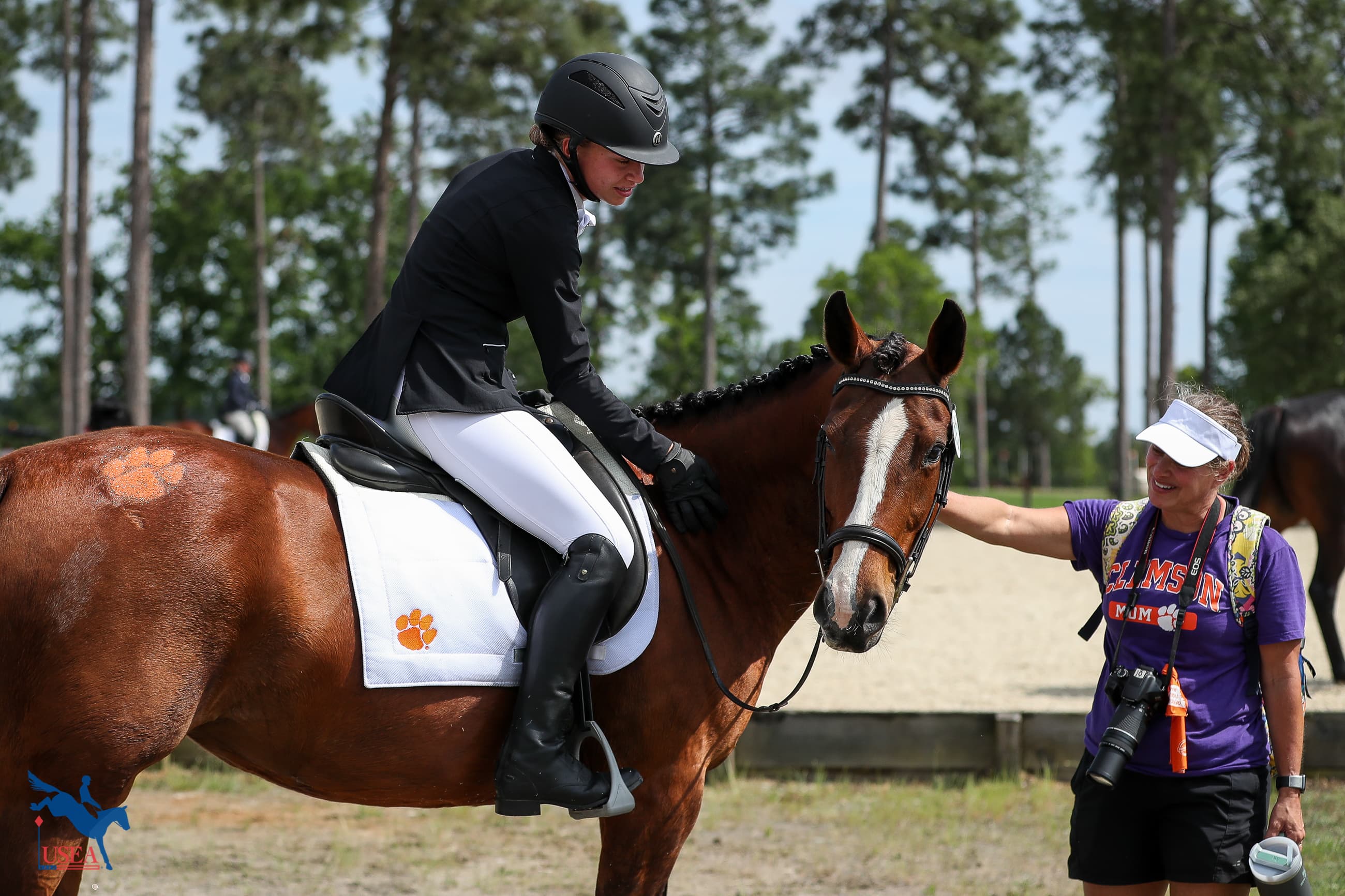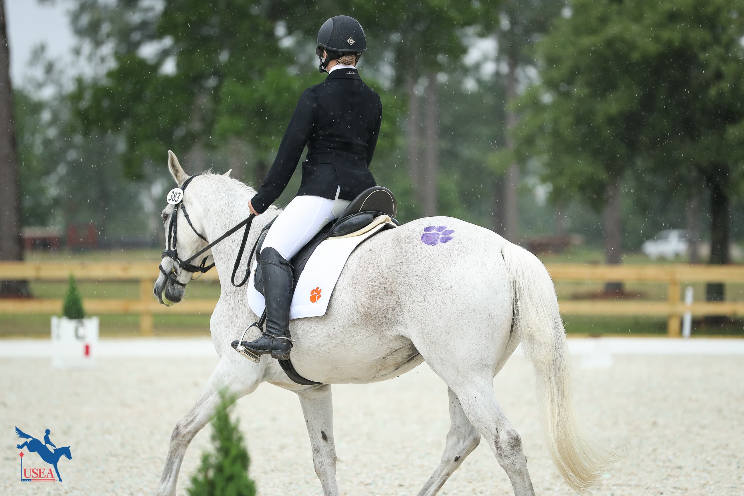 Aiken, S.C.—May 4—Saturday at the 8th annual USEA Intercollegiate Eventing Championship saw a record number of entries trot down centerline at Stable View in Aiken, South Carolina. Riders from eighteen colleges and universities gave it their all in the dressage test before heading into either their show jumping or cross-country phase depending on their division. From Starter up through Intermediate, riders were decked out in team colors and the energy across the facility was electric with cheers.