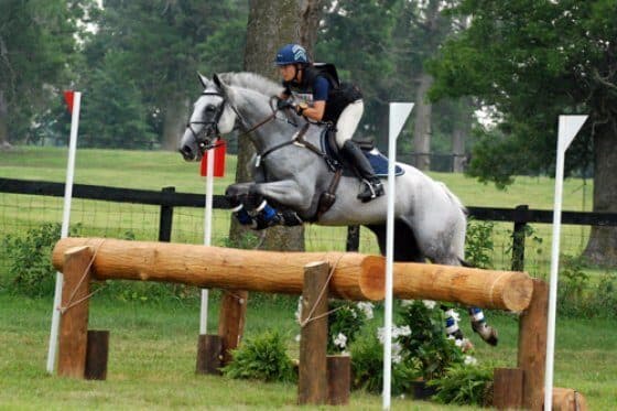Kendyl and A Bit of Tack’s 12-year-old Thoroughbred mare, Ever So Lucky, finished today’s course only one second under optimum time to break their third place tie with Rowdie Jo Adams and claim the position for their own. “I thought David did a great job with the course,” said Kendyl. “Everything rode as planned and it was a really good course to get a rhythm on. I thought the ditch and wall and the water was a bit intimidating so early on the course, but it made me get my horse more in front of my leg early so that worked out really well.