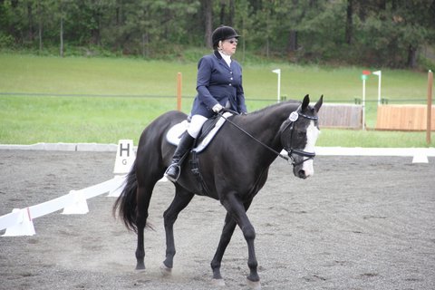 Mary and Joker planned to ride in their Century Club dressage ride June 10 in Wenatchee Washington, sporting a new pad and stock tie given by Spokane Sport Horse Farm.