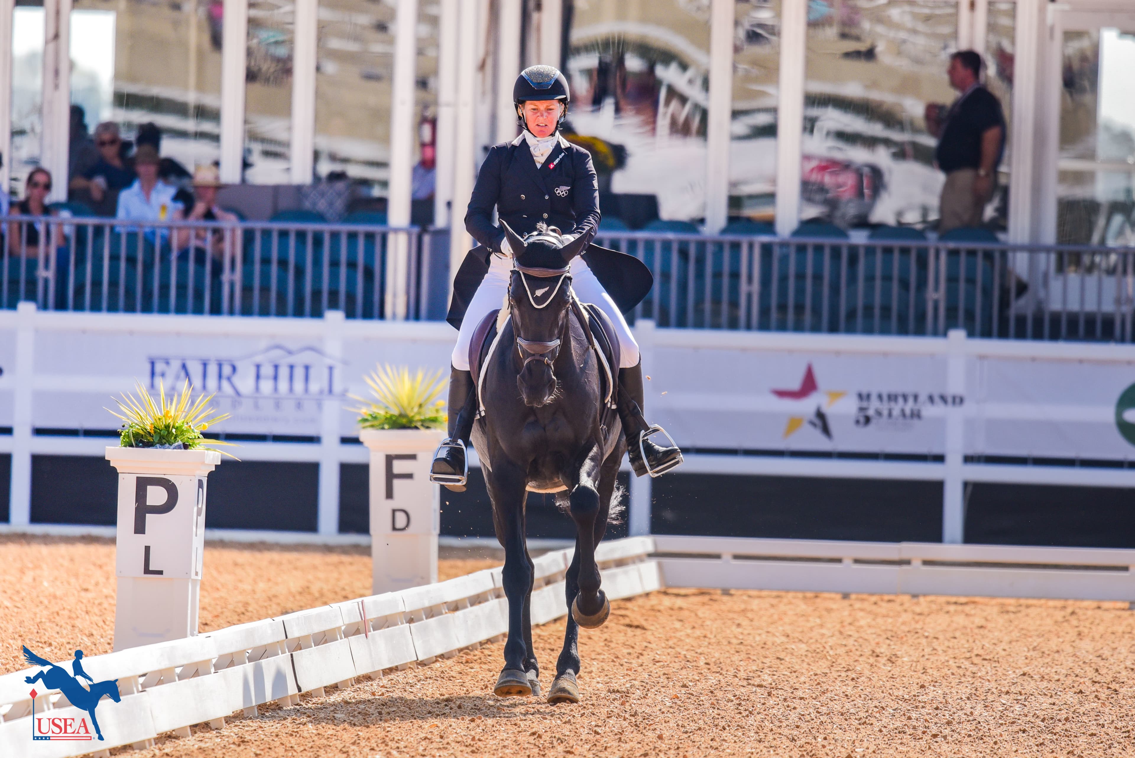 No one could catch Oliver Townend and Cooley Master Class in the dressage arena today despite the remaining 23 pairs' best effort. Angela Hislop’s 16-year-old Irish Sport Horse gelding (Ramiro B x The Swallow) will stand at the top of the leaderboard on a 21.1 heading into the Maryland 5 Star cross-country – the day which is on everyone’s mind.