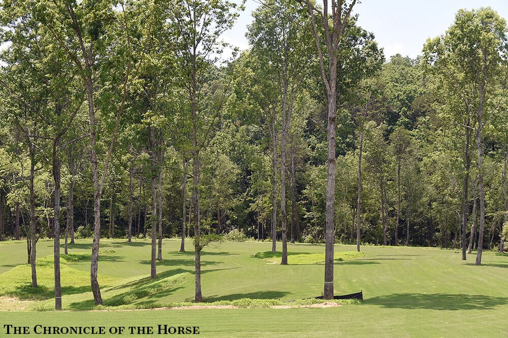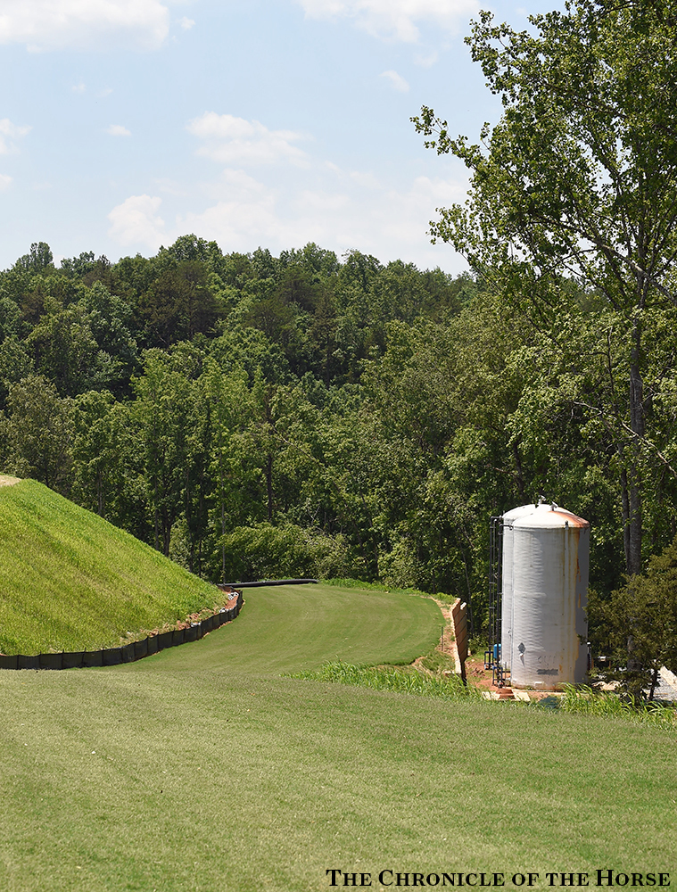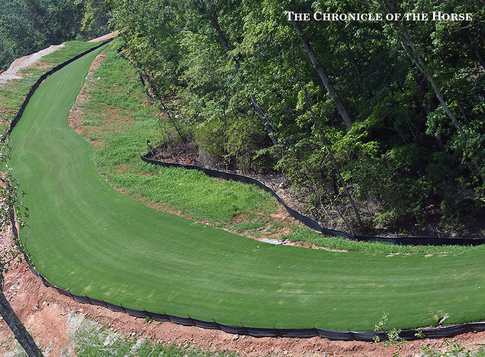 The cross-country paths were carved out of the hillsides in the North Carolina foothills, on a piece of property connected to the current TIEC show facility, starting about two years ago, and it’s been a process ongoing since then. The track now is nearly complete, looking towards the first cross-country event there—the U.S. Pony Club Championships is late July—and then the AEC Sept. 1-4.