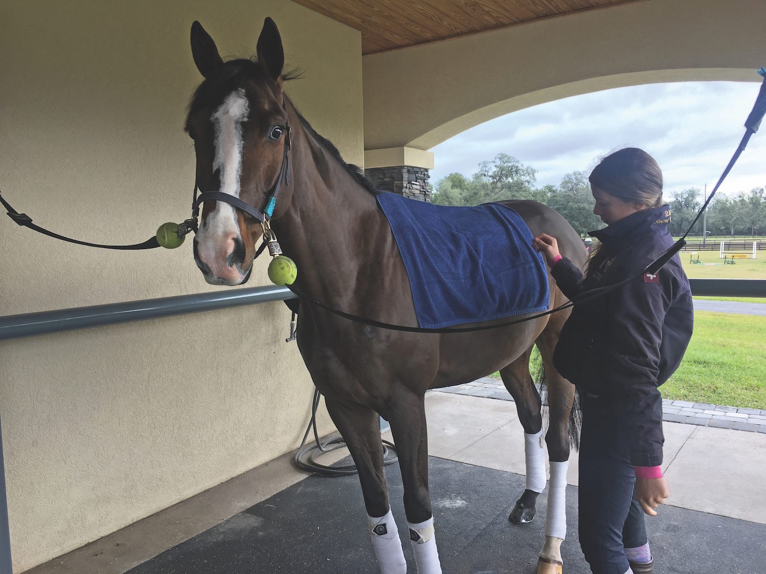 Ice wraps, buckets filled with ice, the big yellow ice boots, pressurized ice boots, and more – the different forms of icing can leave people wondering which product is best. Since grooms are one of the main influencers for a horse’s health and wellness, Johns believes they are the best people to turn to when discussing the variations of icing. “The grooms are the best resource for debating the pros and cons of different ice boots and cold therapy systems. A couple of the goals of ice therapy are to reduce inflammation, alleviate pain, and minimize swelling. The type and location of the injury will influence the best method of applying ice therapy. Horse compliance and safety of the support staff applying the therapy are of paramount importance. For instance, ice wraps applied incorrectly or for a prolonged period of time can damage the underlying tissue. Cold therapy may be administered to horses using many modalities, but they should all have the same end result. The ultimate goal is to decrease the temperature of targeted tissues and accelerate the healing response.”