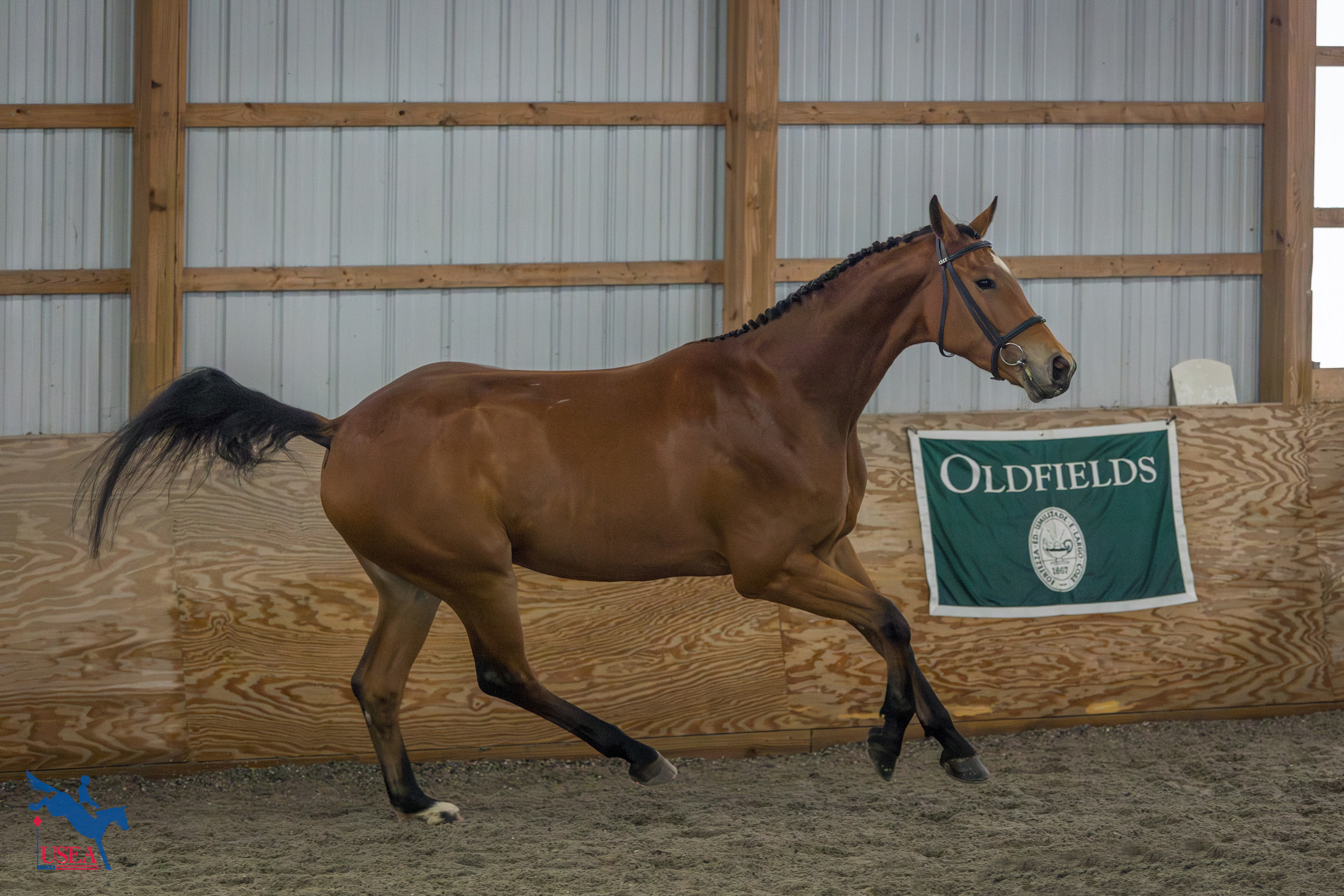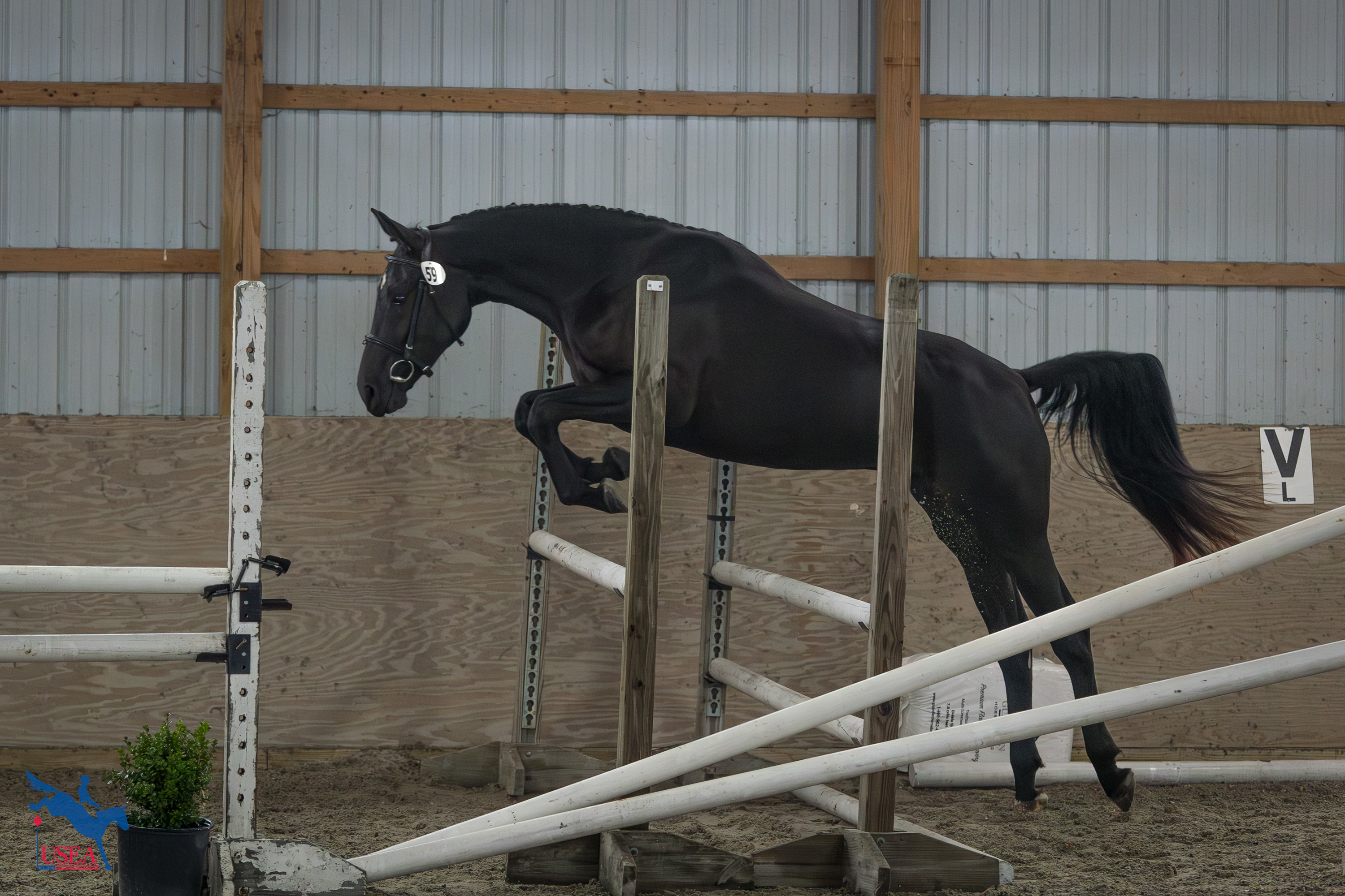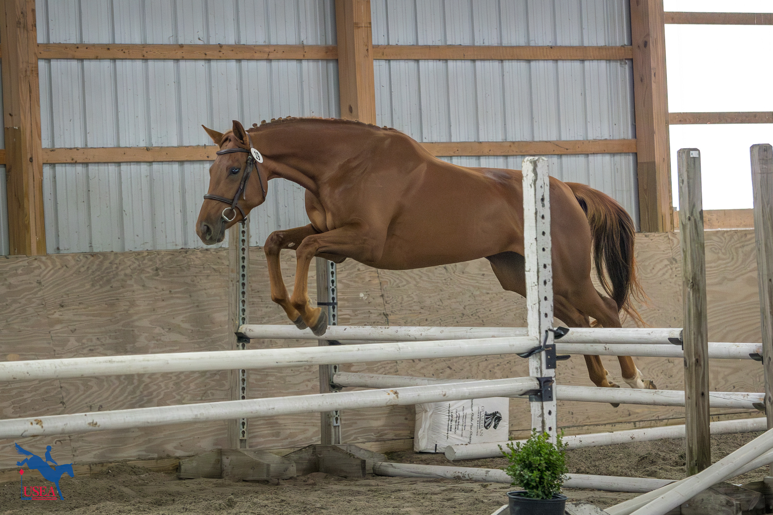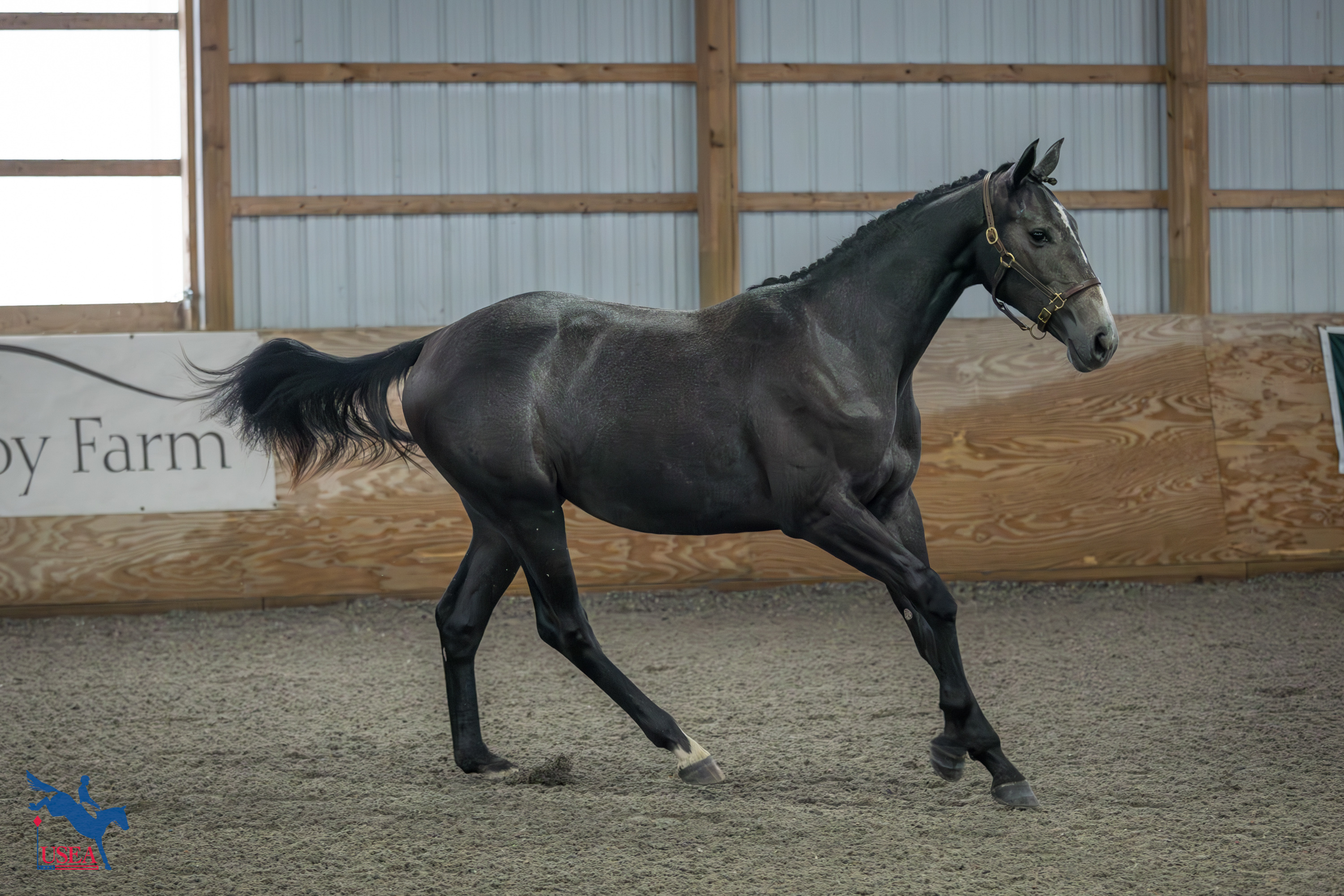 Enchantée FHF (Escher DFEN x Don’t Get Me/Don't Get Mad), a 3-year-old Hanoverian mare, scored 8.23 in-hand to earn second and 7.99 in the jump chute to earn third place, in her respective age classes. “We've been very happy to have YHS take up the eventing shows for the young horses,” breeder and owner Olivia Schlicting of Fox Hole Farm in Warrenton, Virgina, shared. “We had previously done FEH, but the format of YHS is a little more friendly to the youngsters, with more at liberty and less in hand. If ‘Emmy’ shows aptitude for the higher levels, our goal is to place her with a professional eventer to maximize her potential.”