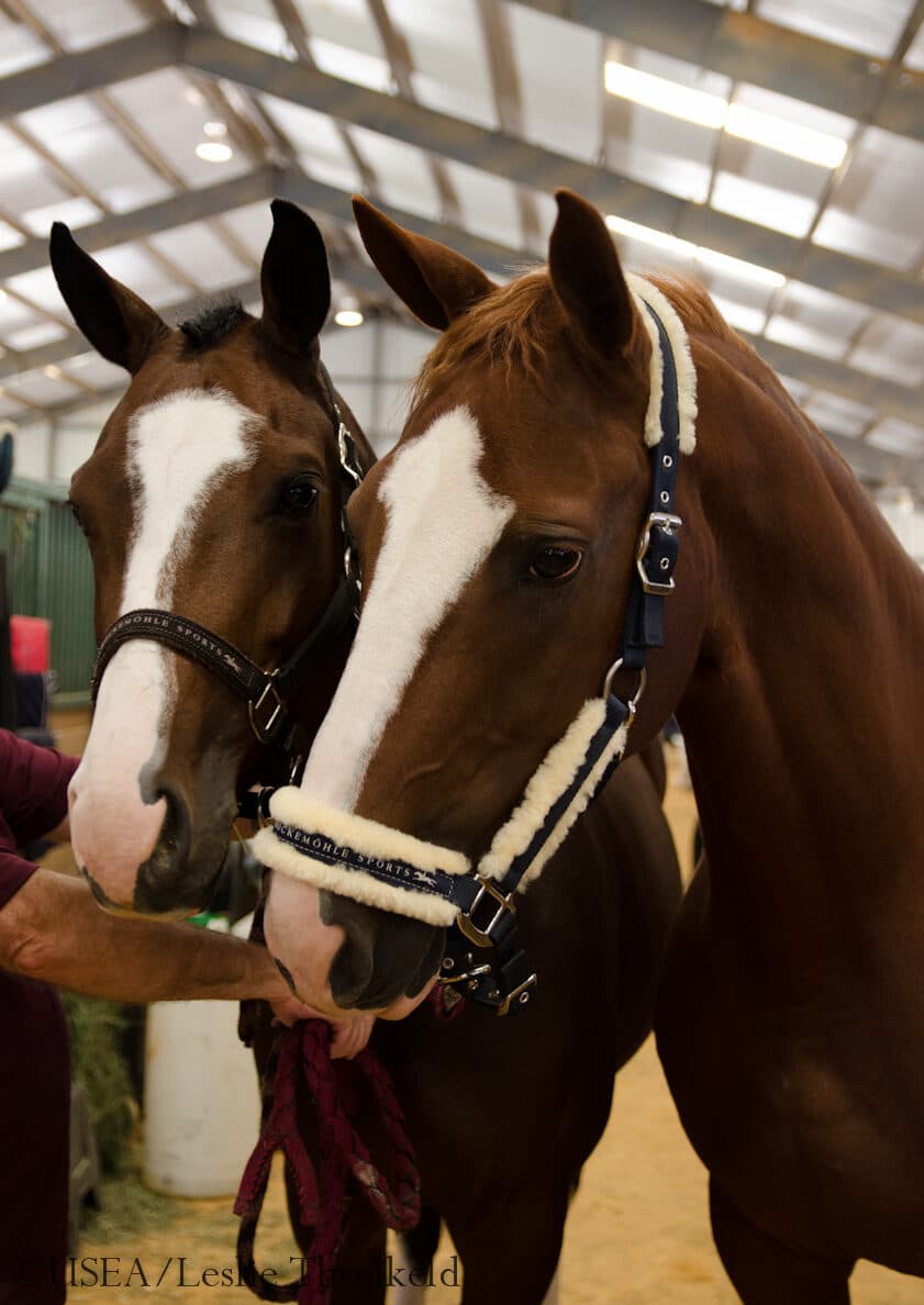 It’s a family affair at the AEC for Elliot and Sher Schwartz of Waverly Hall, Georgia. Their 10-year-old Canadian Sport Horse mare Beaulieu’s Cayenne (Calibur x Pinacolada) is here competing in the Open Intermediate division with Julie Richards, who is also riding Cayenne’s daughter, CS Carrera (by Contendro) in Novice Horse. Elliot says the two are inseparable. When we visited them in the barns, they stood hip to hip and nuzzled each other for their photos (pictured above).