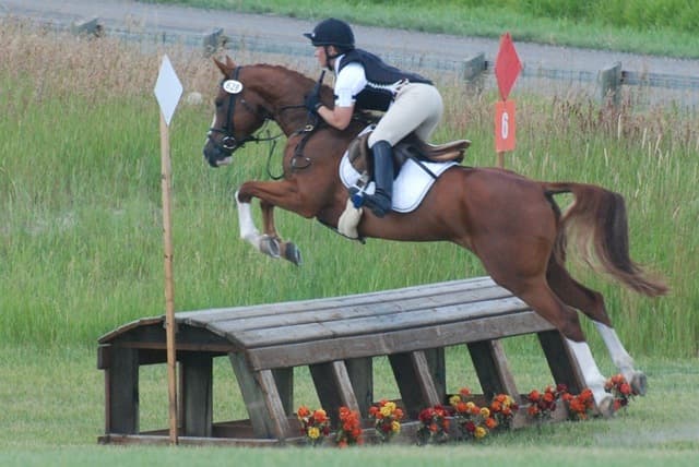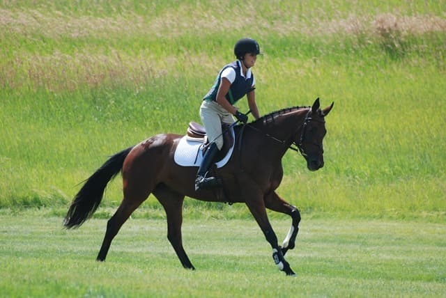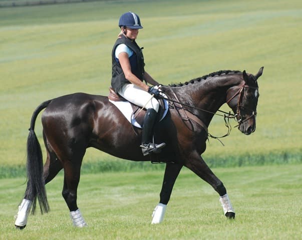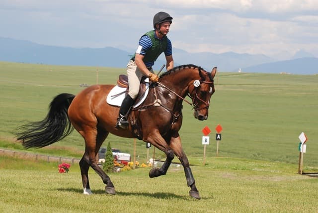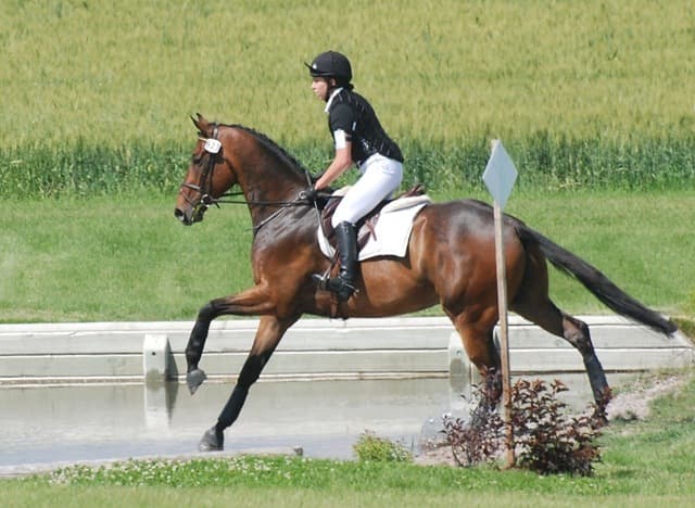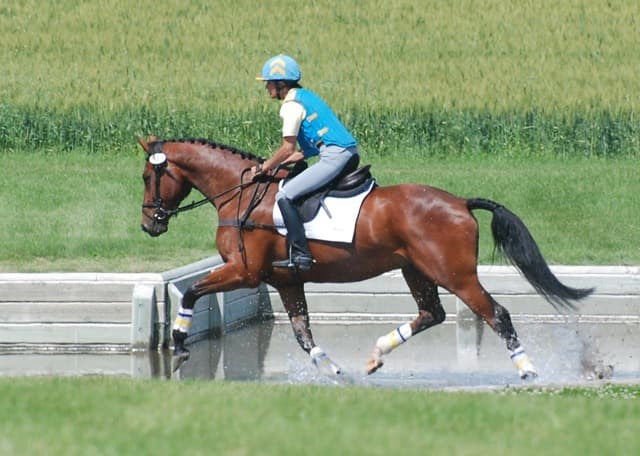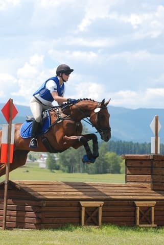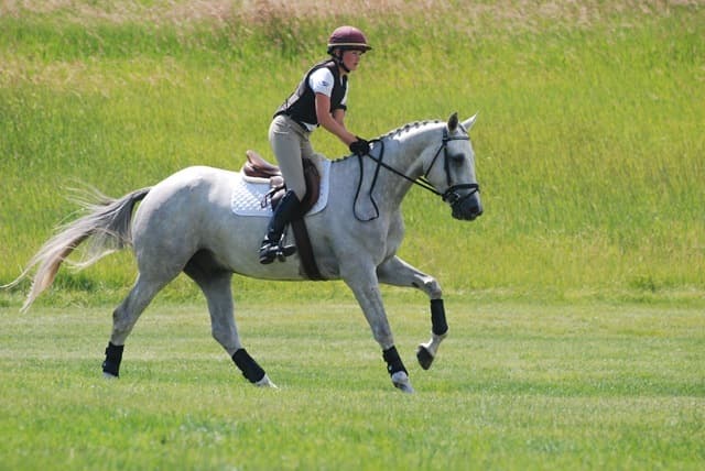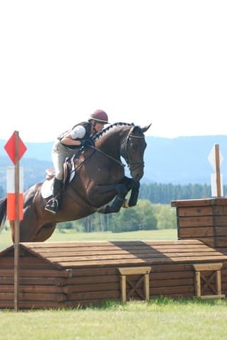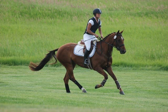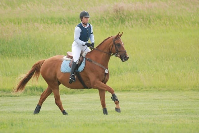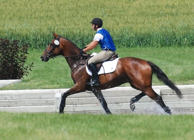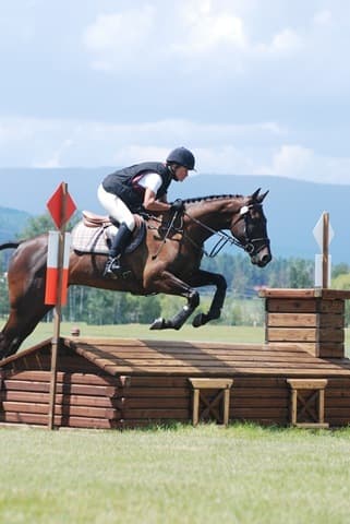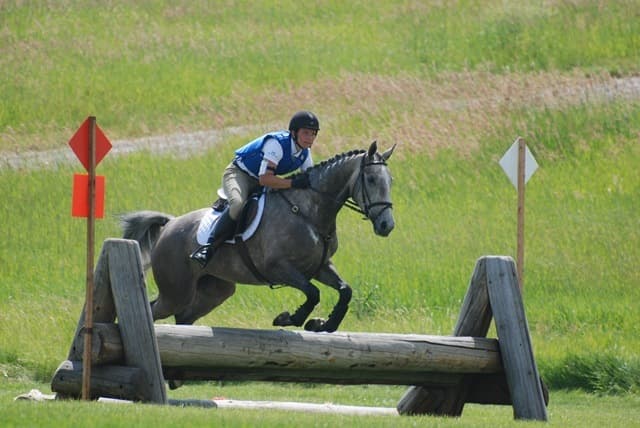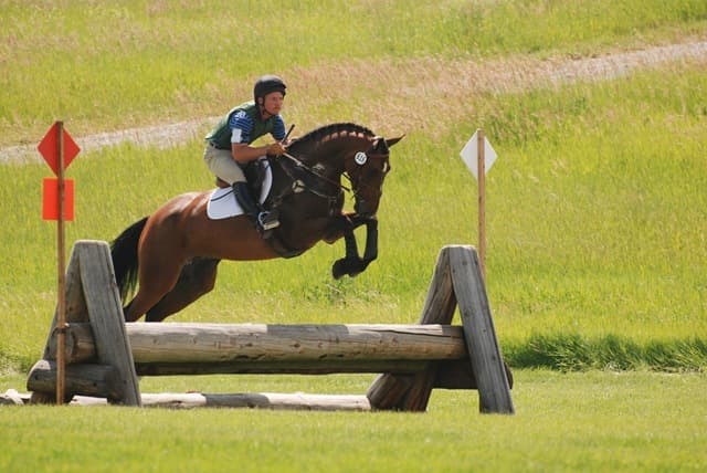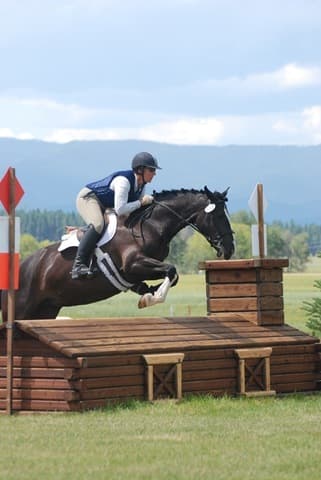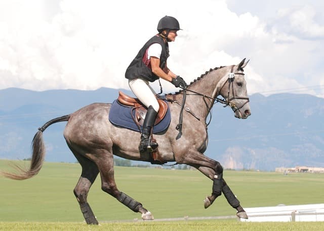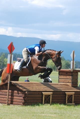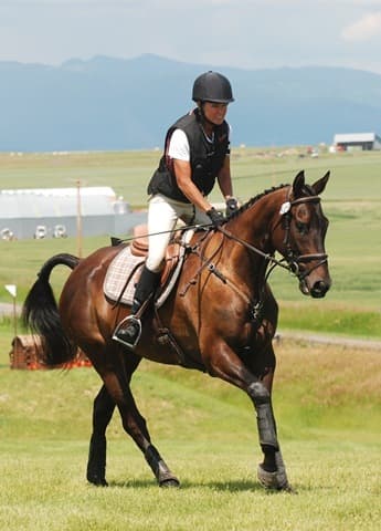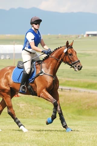 Thirteen five-year-olds and thirteen four-year-olds competing in the Spalding Labs/USEA Young Event Horse classes today were the first to take the stage at this year’s highly-anticipated Event at Rebecca Farm in Kalispell, Montana. At the end of the afternoon, Cathy Wieschhoff of Lexington, Kentucky piloted her Thoroughbred gelding Ready for April to the win in the five-year-old class (with an 82.4), while Marc Grandia, of Onalaska, Washington, and Alison Ashbaugh’s four-year-old Aachem won the four-year-old division with an 82.8. Complete results. Emily Daily photos.