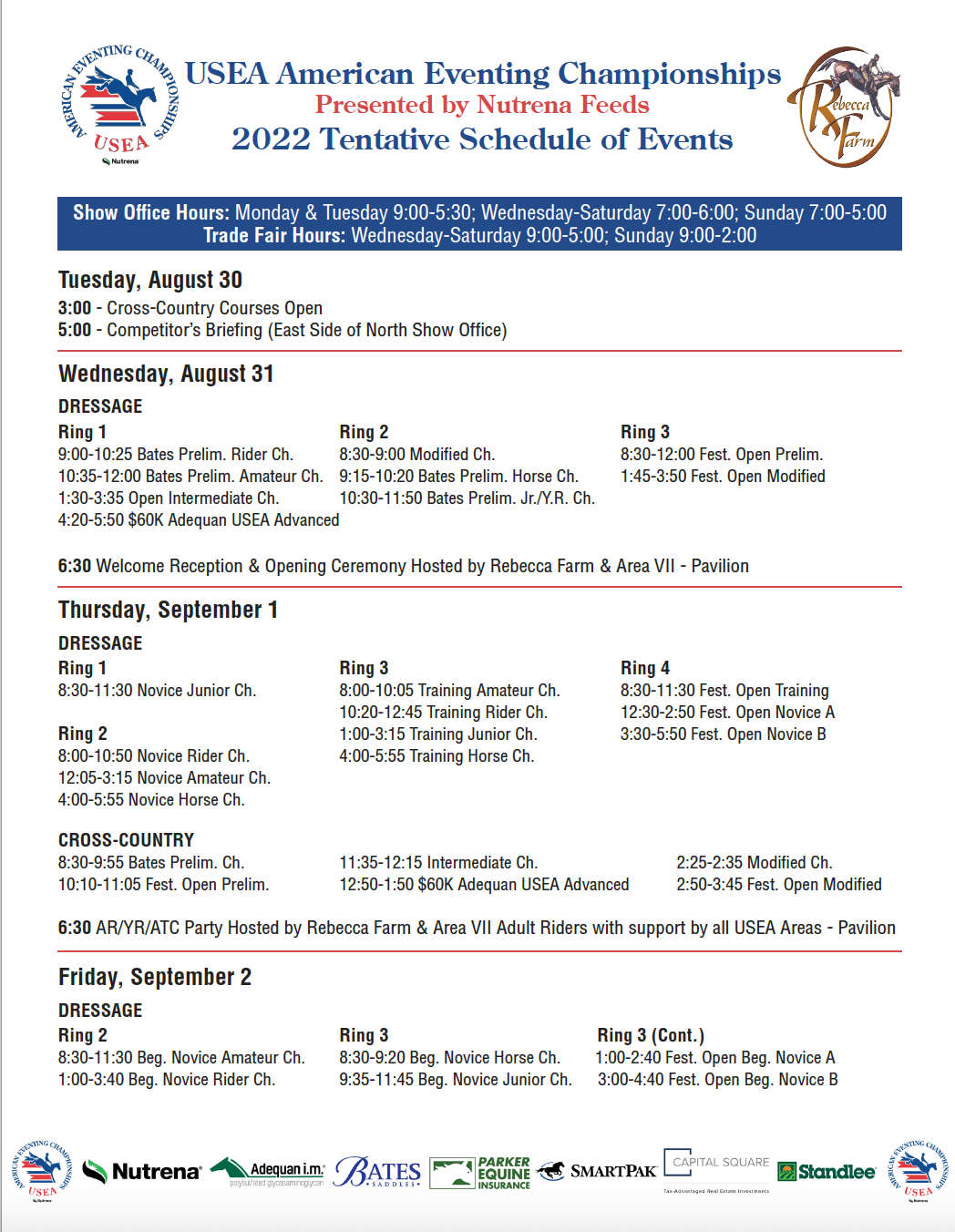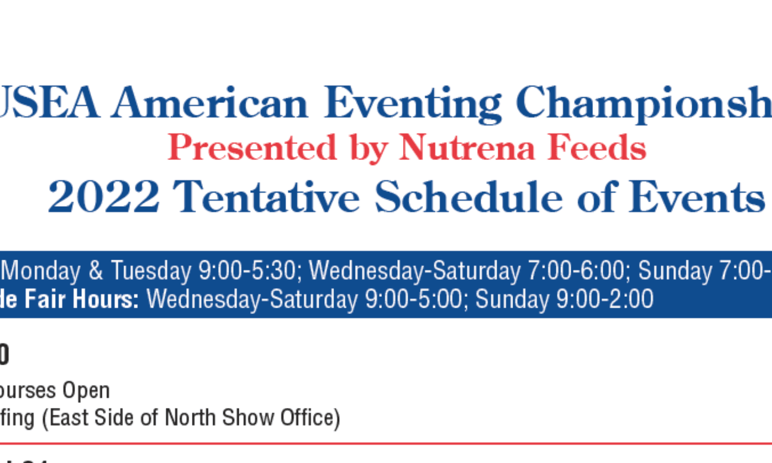 Access the Schedule for the 2022 USEA AEC presented by Nutrena Feeds