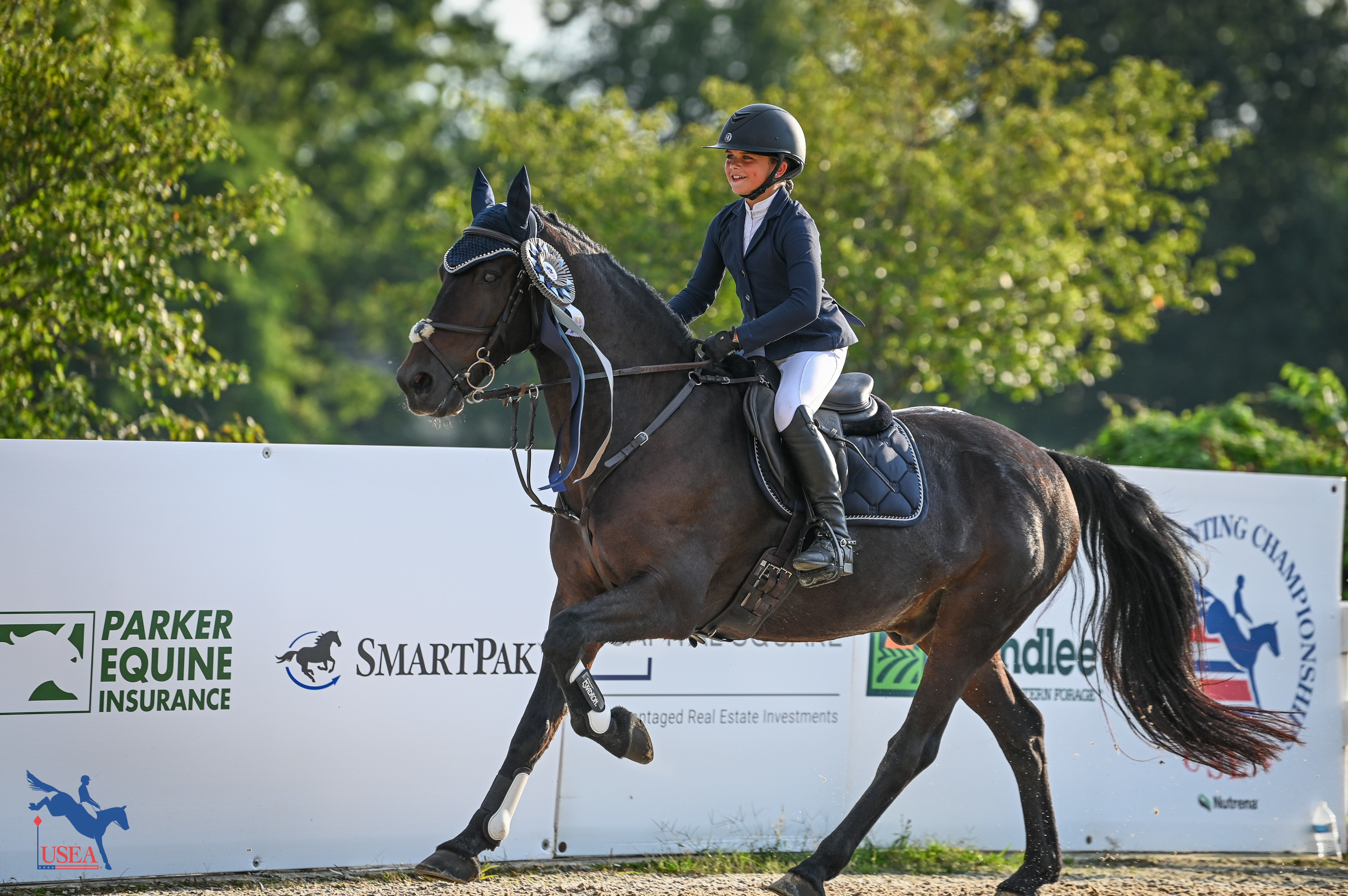 “Addie,” as her friends know her, held her own in the highly competitive USEA Beginner Novice Junior 14 & Under Championship, finishing ninth out of 28 entries. Riding her beloved partner of two years, Gigi Geiger’s 17-year-old Connemara gelding Conway Lad, Addie and “Connor” executed beautiful, double-clear rounds in both jumping phases to finish on their dressage score of 32.5 and place within the top 10.