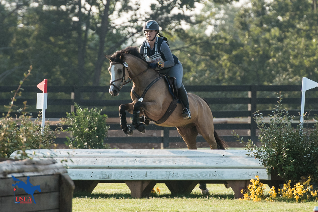 Anna Kristin Paysinger and her own 8-year-old Oldenburg mare, Luistana (Linton x Espersica), held their lead in the Professional’s Choice Training Amateur division after finishing a double clear trip around the cross-country track and will look to take top honors in the division after their completion of show jumping tomorrow. The pair will continue forward on their dressage score of 25.0.