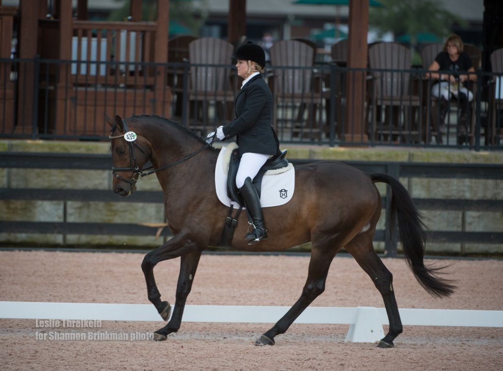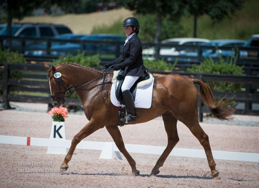 Anne Wilson didn’t let the severe thunderstorms that came rolling through Tryon today dampen her dressage test with Call Me Waylon, the 9-year-old Holsteiner gelding by Cassado. Although they ended up soaked afterwards, the pair earned a score of 24.8 for first in the large Master Novice Amateur division.