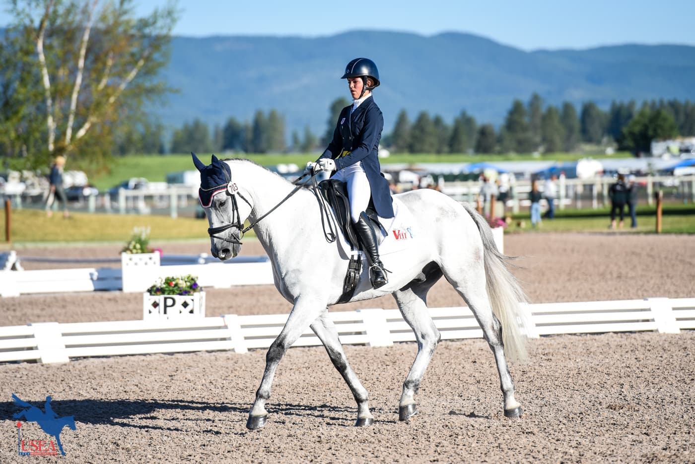 Teammate Charlotte Babbitt edged out Pellegrini by 0.9 to steal the individual lead with a 24.0. “He’s such an incredible horse, and I feel so lucky to ride a horse that every time I go down the centerline I am guaranteed that he’s going to try his best and give the best test he’s capable of,” Babbitt said of her 7-year-old Dutch Warmblood, 2 A.M. (Sheraton x Regina K). “Abe the babe, as we call him, is like a puppy dog. He’s 7 this year, and he’s super quirky and fun. It’s been an incredible journey with him and I’m really lucky to have a horse like him.”