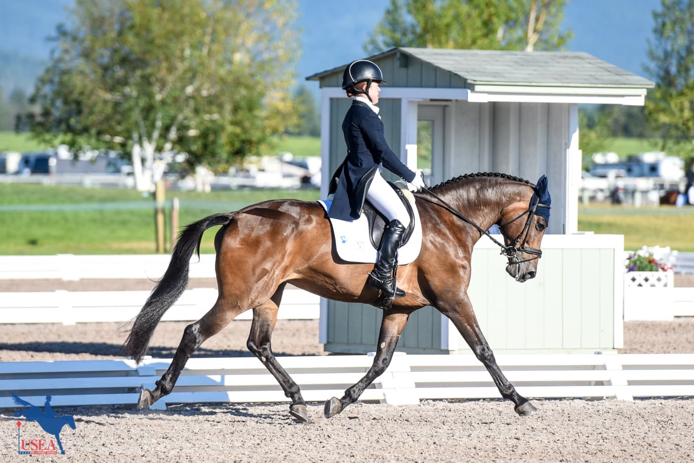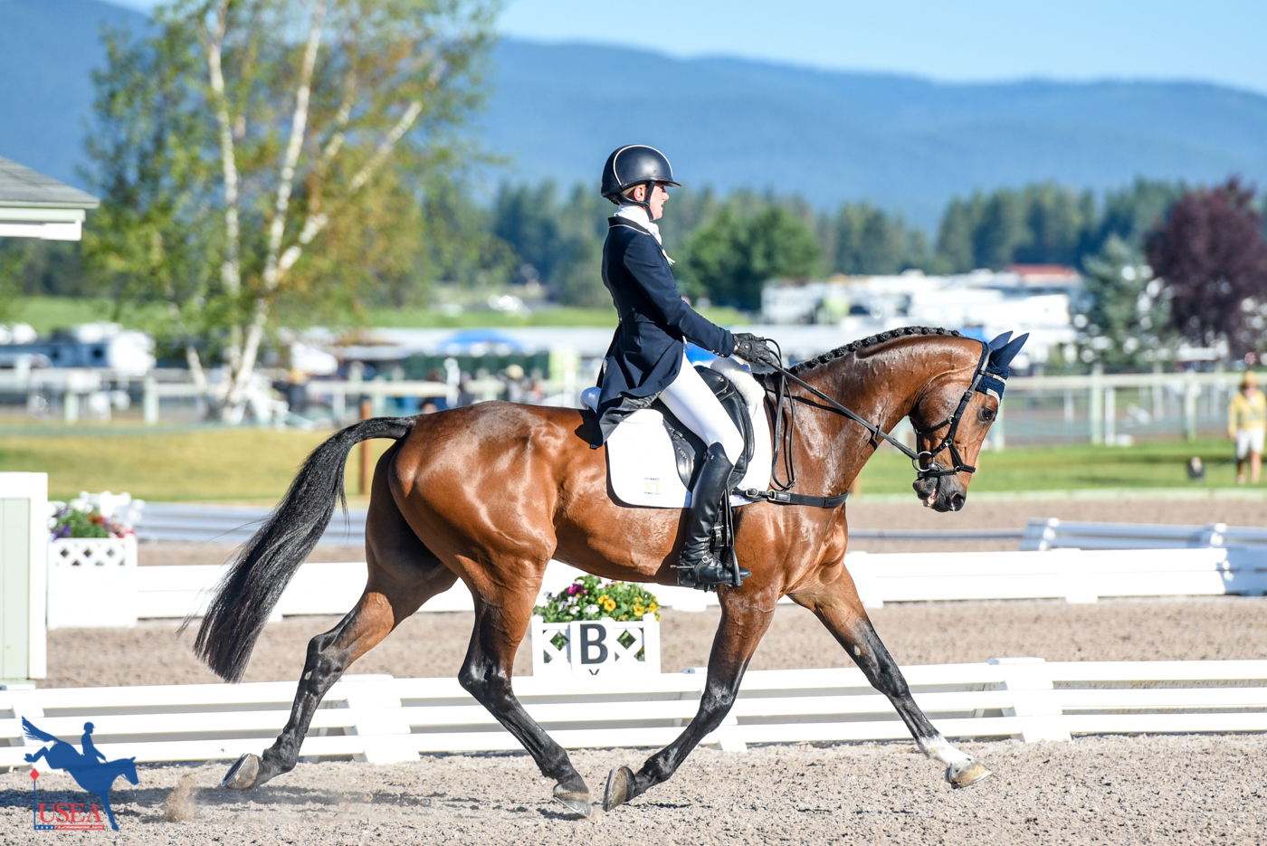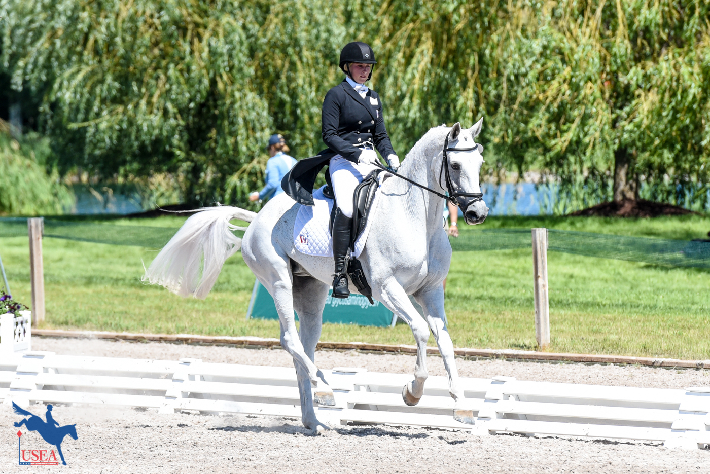Meg Pellegrini (Area VI) stole an early lead aboard her own 14-year-old Holsteiner gelding, RF Eloquence (Contender x D-Ginger), laying down an impressive 24.9 to hold the top standing for the majority of the day. “Ricky Bobby was super, super good today,” Pellegrini said of RF Eloquence. “He went in and really pulled off his best ability. We had a few bobbles here and there, but it was one of our best tests and he was calm and focused. It’s really nice to get on a horse who always knows what his job is.”