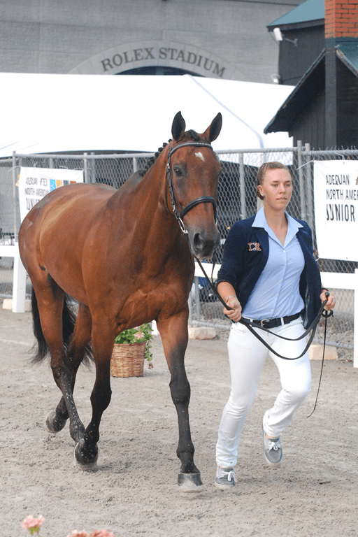 The competitors at the Adequan/FEI North American Junior and Young Rider Championships started their morning bright and early with the second veterinary inspection. All horses ultimately passed, although Clare Green and Windbrook Sensotronic from Area II were held and asked to represent. Scott Kuhlman (Area VI CH-Y** team members) and Savannah Fulton (Area II CH-J* Individuals) withdrew their horses, Clark Kent and Regal Wood, after the jog-up. Show Jumping will begin at 1:00 PM in the main Rolex arena with the CH-J* followed by the CH-Y**. Pictured above: Ashlyn Dorsey and Cosmic Girl riding as individuals for Area IX in the CH-J*.