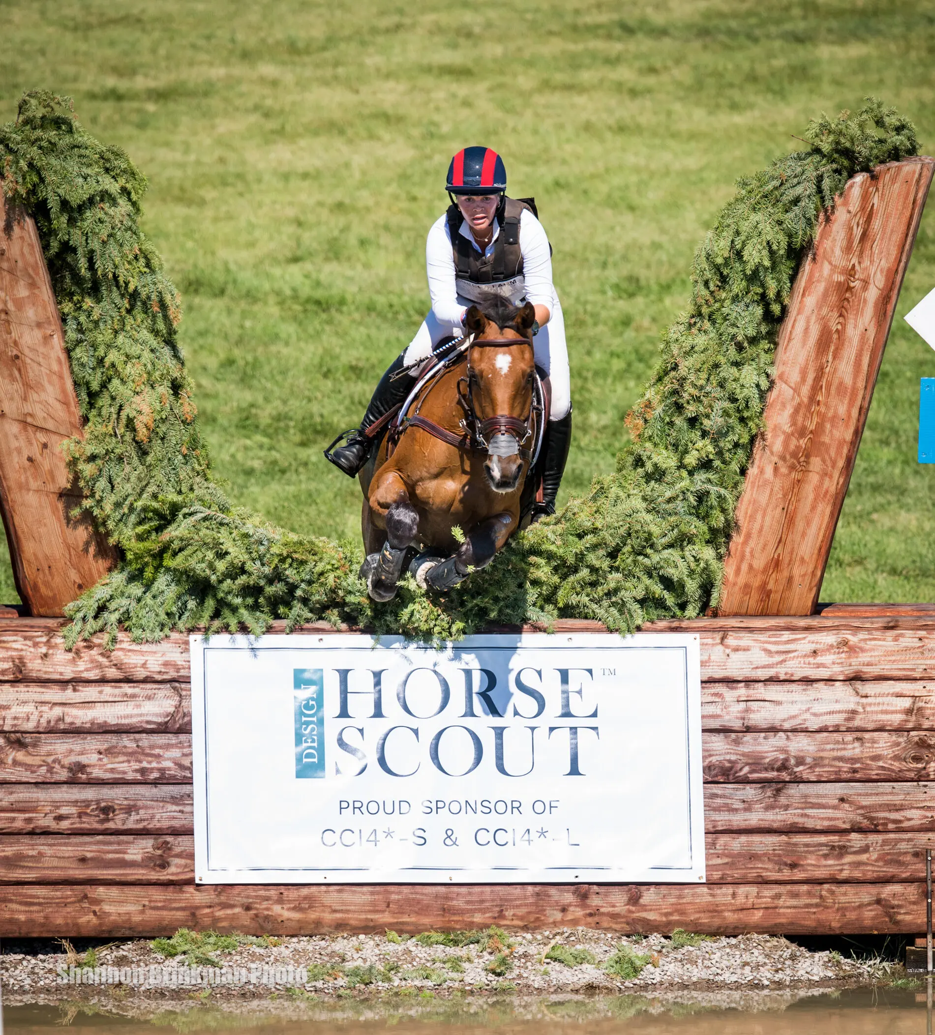 Currently in second on a score of 43.2 is Mikayla Hoffman and Eli (Fisher Pond x Heavenish) a 15-year-old Thoroughbred gelding owned by Hoffman. Hoffman particularly enjoyed the water complexes on the course, saying “Definitely the first water was a highlight for me. He just went through and nailed that one stride out.”