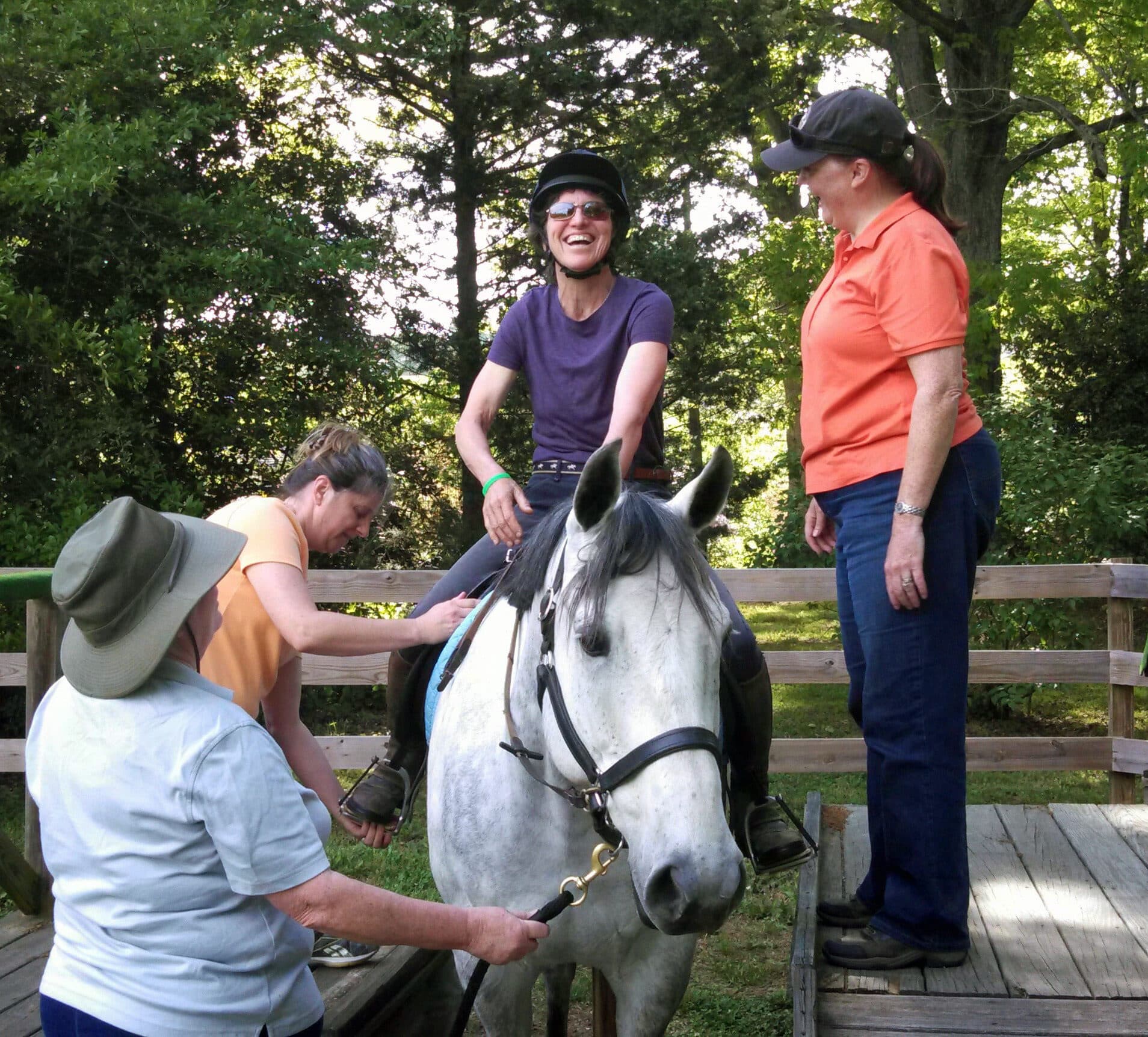 Doctors recommended that she wait at least a year from the date of the accident before getting back to riding, although she has been back in the saddle on therapy horses in a highly controlled setting. In the barn, she feeds and cleans like she always has and is also getting back to her students.