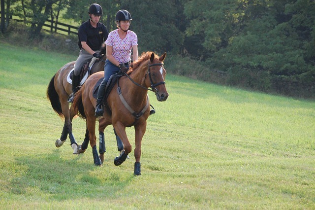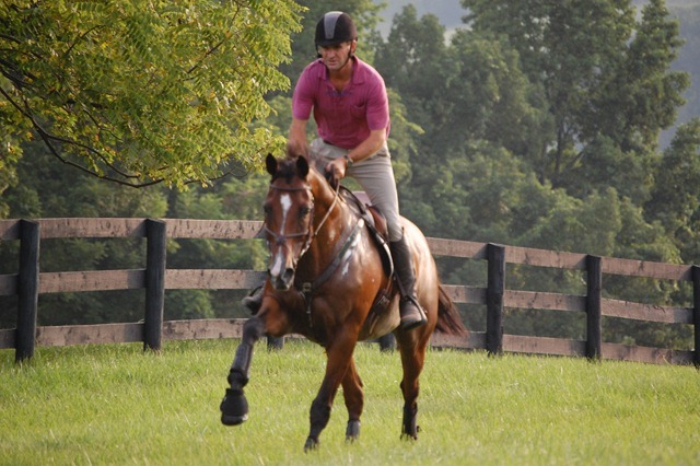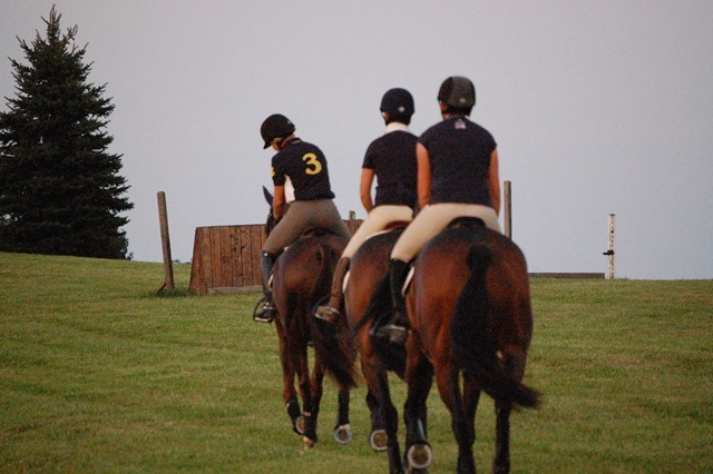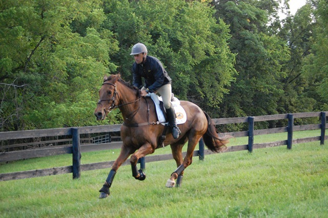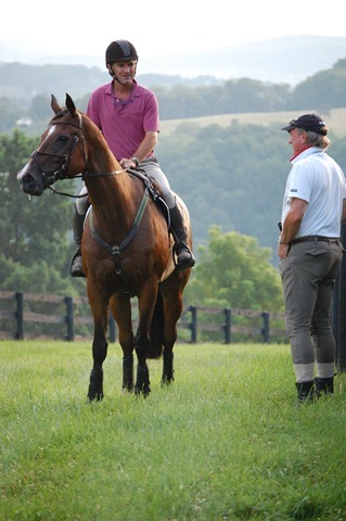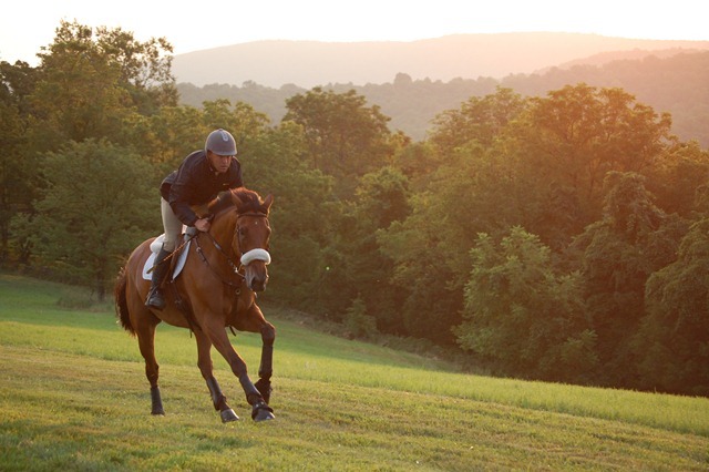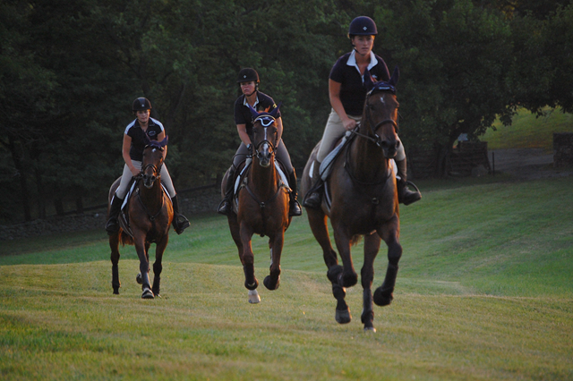 As the sun came up over the mountains, members of the USEF Eventing High Performance Team gathered at the bucolic High Acre Farm in The Plains, Virginia to gallop. For the past two days the Team members have been attending training sessions conducted by U.S. Chef d’Equipe Mark Phillips. This morning’s gallop and tomorrow’s veterinary exam are being held in anticipation of the riders’ departure for the Burghley CCI4* in order to ensure each horse’s current fitness and soundness.