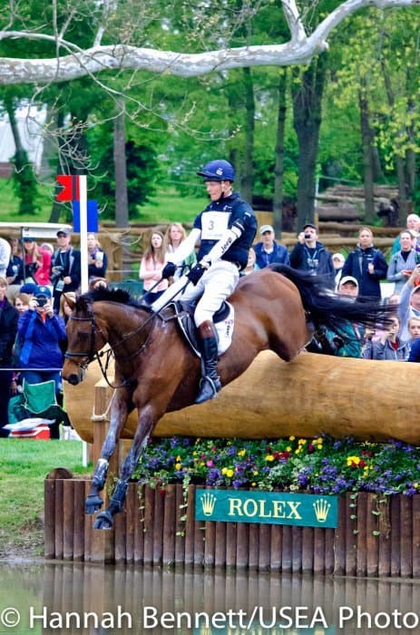 Yesterday’s fourth place pair, Alexandra Knowles and Last Call, had a heartbreaking stop at the rails into the Sunken Road and was eventually eliminated. Marilyn Little, tied for fifth after dressage, fought through the pain from her injured shoulder but fell at The Hollow. Though clearly shaken, she stood and smiled for the spectators before leaving the course. Mary King, tied with Marilyn after dressage, retired Fernhill Urco at the Horse Park Barns. The horse never seemed to find a rhythm and had picked up one stop at the Rolex Head of the Lake. Many fans were pulling for Becky Holder and Can’t Fire Me, seventh after dressage, to be redeemed from their unfortunate elimination last year. Sadly, Becky was unseated when Can’t Fire Me hit the top of the goose at the final water, just a few fences from home.