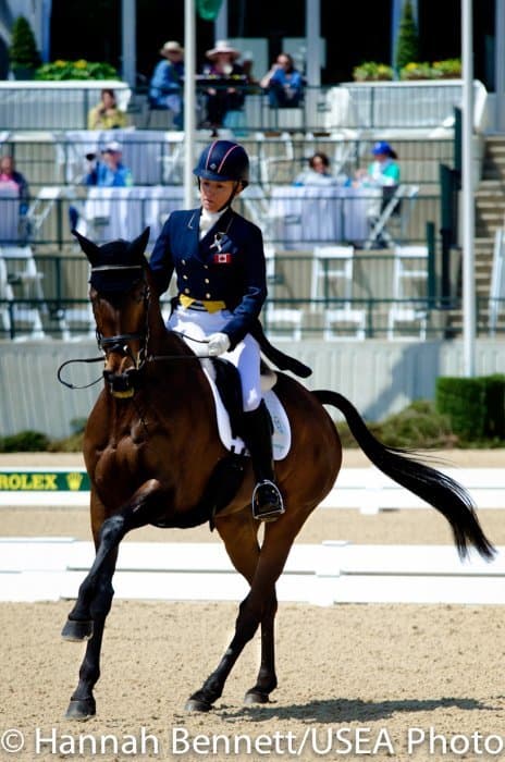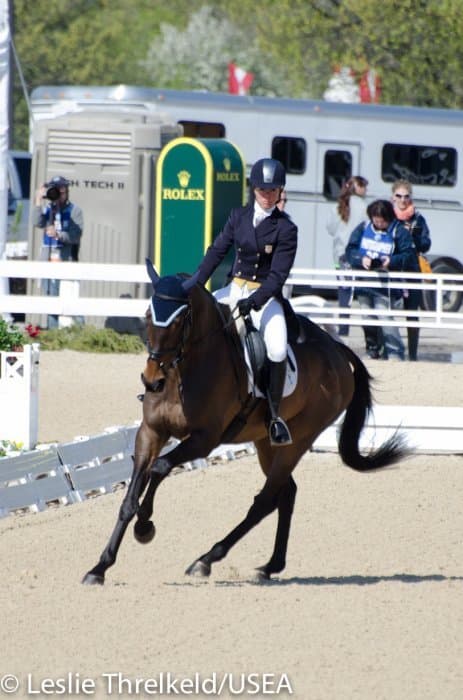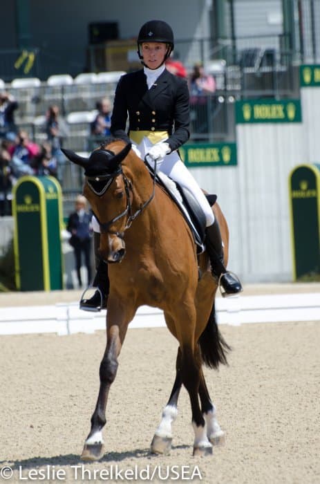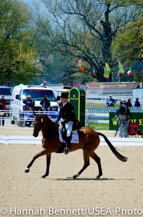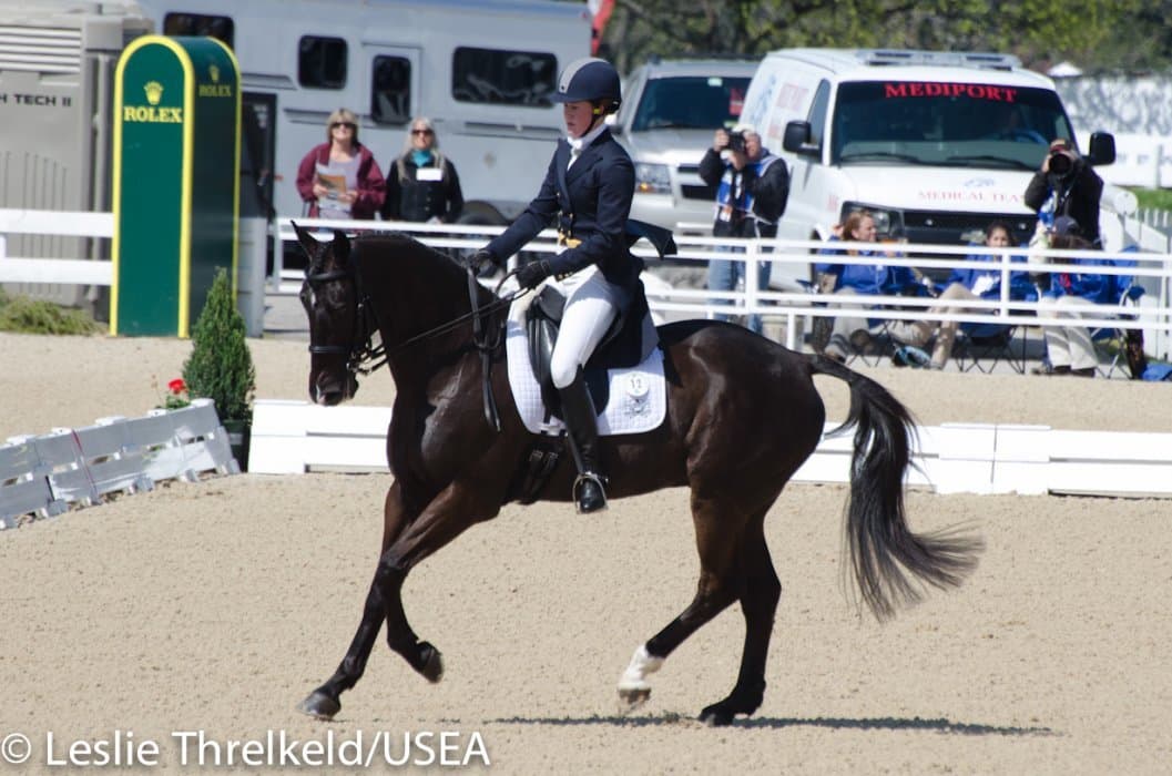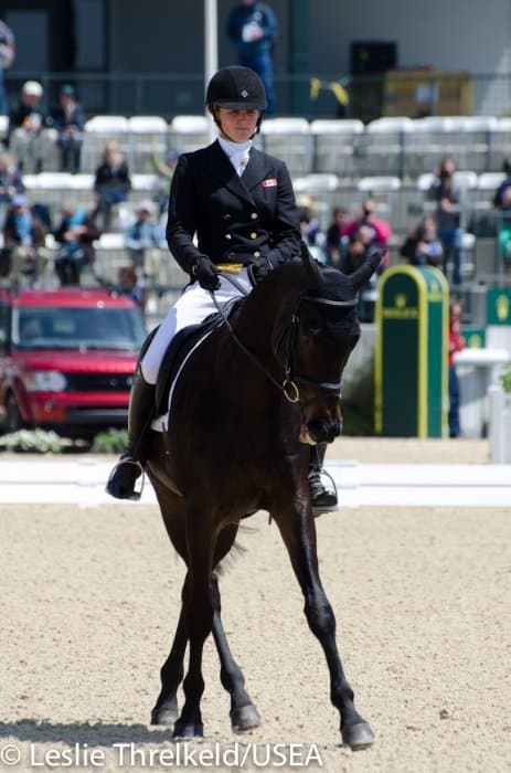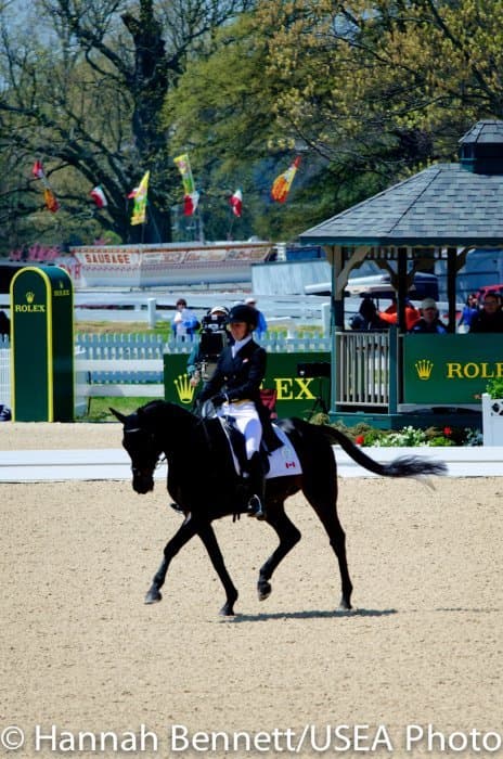 Shandiss McDonald (CAN) and Rockfield Grant Juan are third overnight at their very first Rolex appearance. “I’ve wanted to come here so long and it’s exciting to be here. I’m so happy my horse was steady in the ring. It is a big atmosphere, the biggest he’s ever been in. He was settled, relaxed, willing, and he did his job,” Shandiss said. She praised the new Canadian Team Coach Clayton Fredericks for his teaching. “We were able to take what we’ve been working on and put it in the ring.”