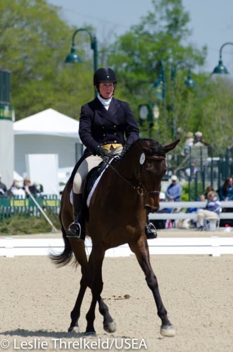 Teddy, a 14-year-old gray Thoroughbred owned by Melissa and Phil Town and Becky’s husband Tom Holder, is quickly becoming a new fan favorite, and his partnership with Becky only continues to improve. “It’s always an amazing feeling to ride down that ramp into the Rolex arena. There are no more amazing fans than at Kentucky,” Becky said. “It was nice to have Teddy be nice and calm and relaxed in the ring and put forward the test that I know he has in him.”