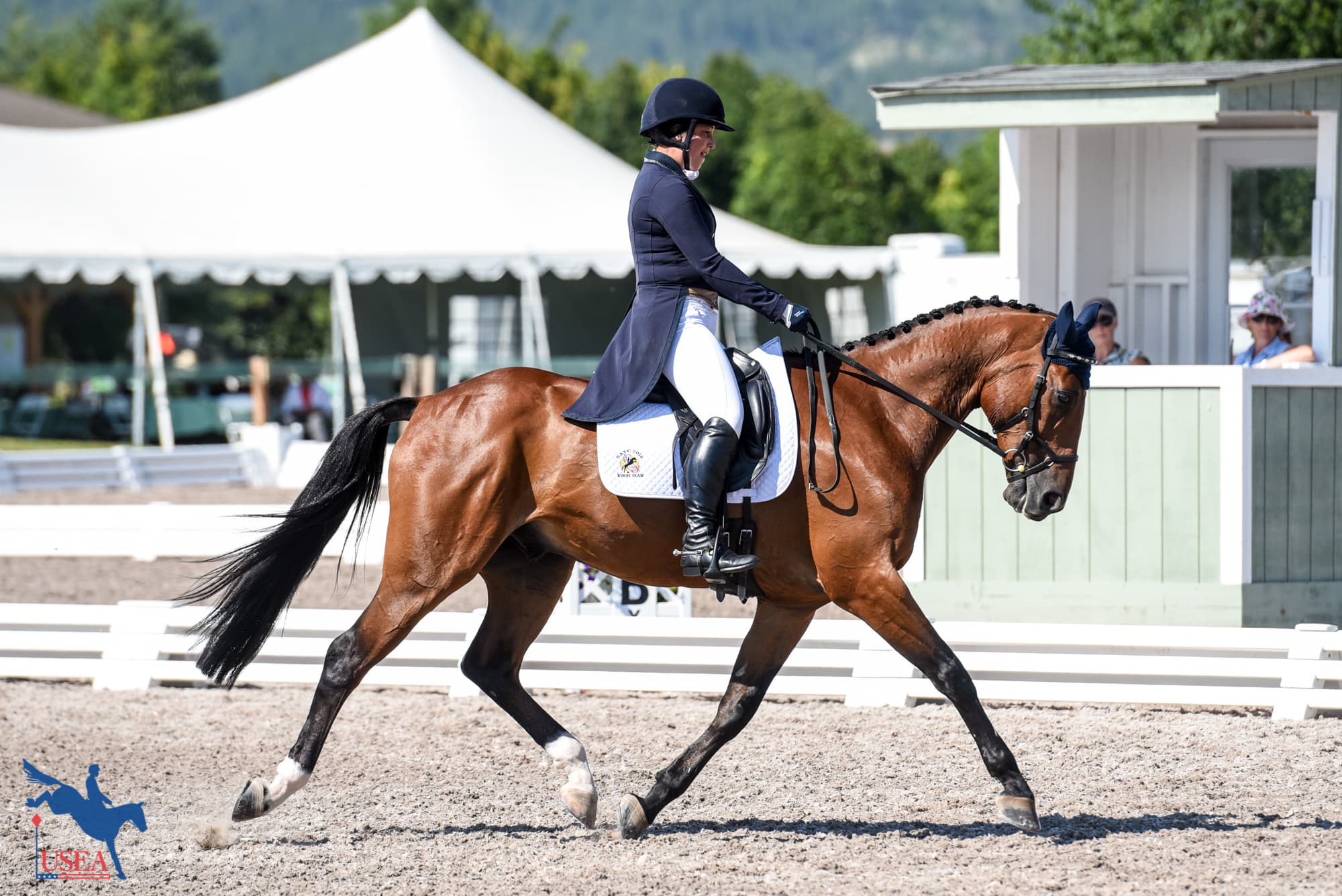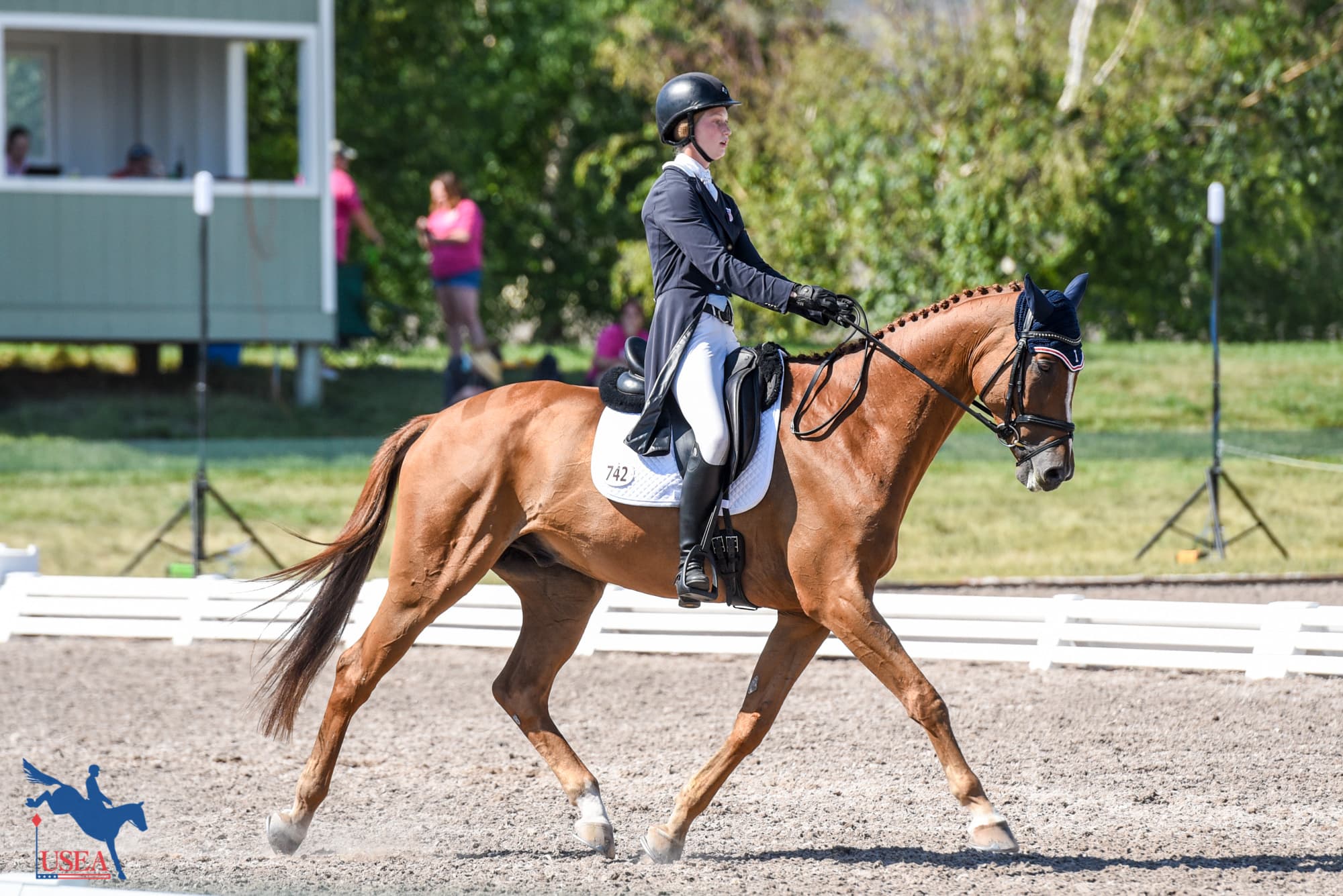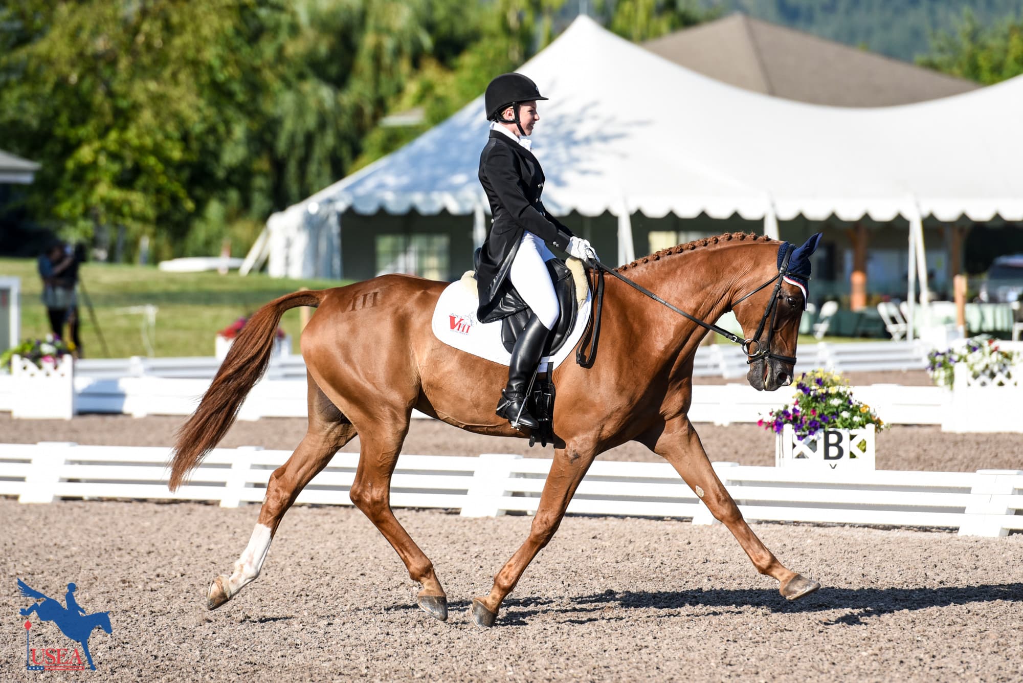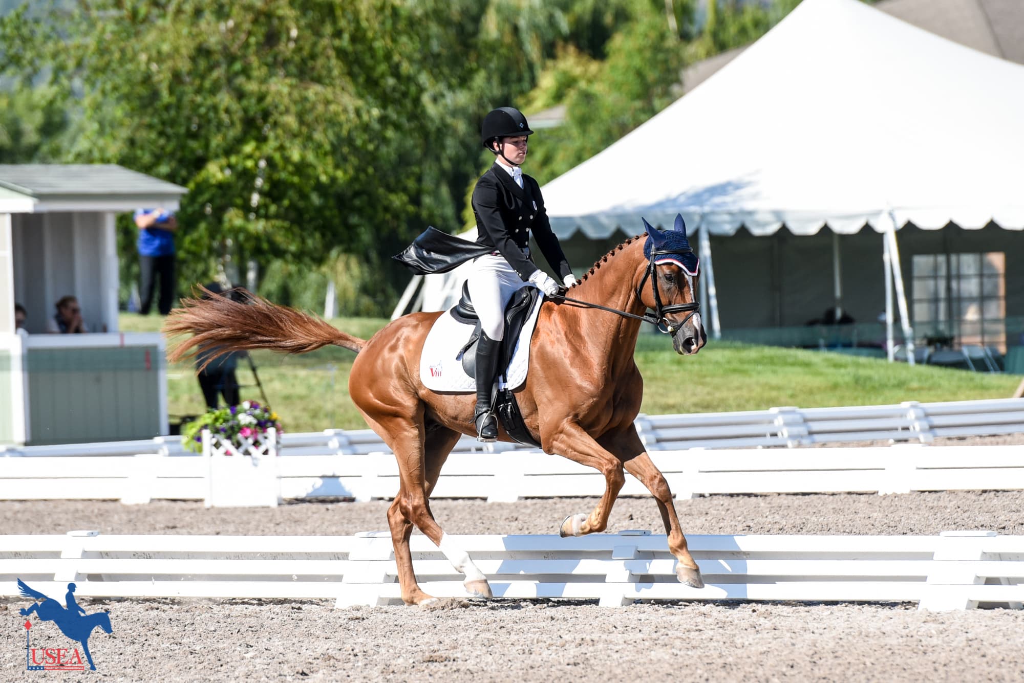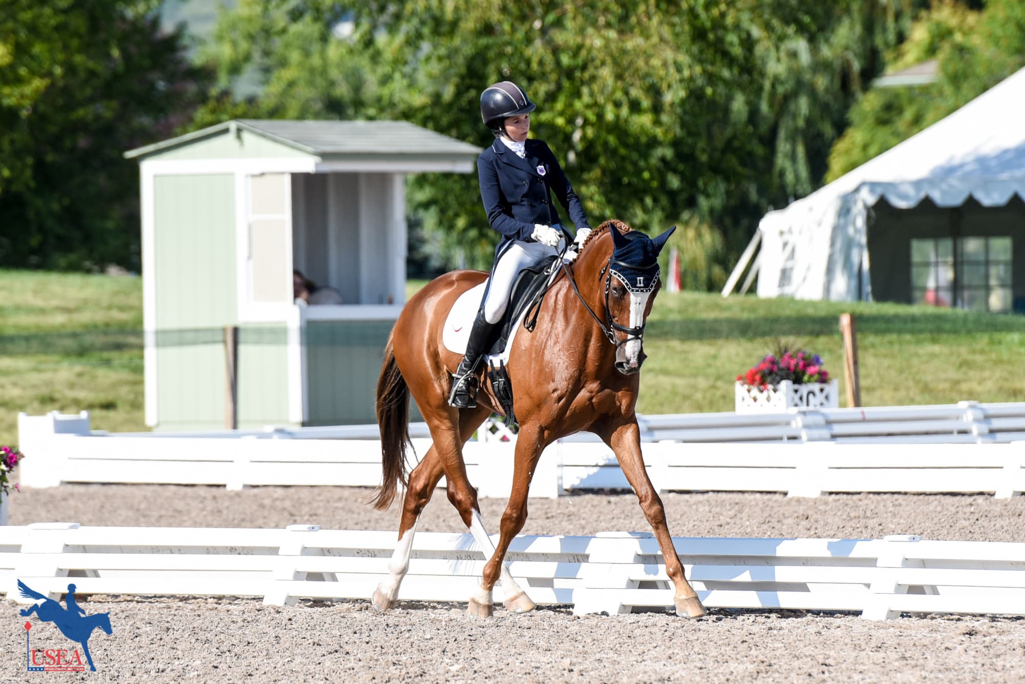 It’s certainly not the worst to go first. Area VIII’s Alexandra Baugh took one for the team and trotted down the center line as the first competitor of the day, and the judges were undoubtedly impressed with the 2017 NAYC CH-J* individual silver medal pair. Ballingowan Pizazz (OBOS Quality x Rocklea), Altorac Farm’s 16-year-old Irish Sport Horse gelding had an smooth test with Baugh in the irons, scoring a 30.8 which remained the best score of the day to sit in individual first place heading into the next phase. “Mango was absolutely perfect,” said Baugh who is riding for the combined team of I/IV/VIII. “It was definitely one of our best tests to date. It’s been a bit of a challenge for us, and I’ve had him for two years now. We’ve finally gotten to know each other more and we’ve figured it out. He was really great today.”