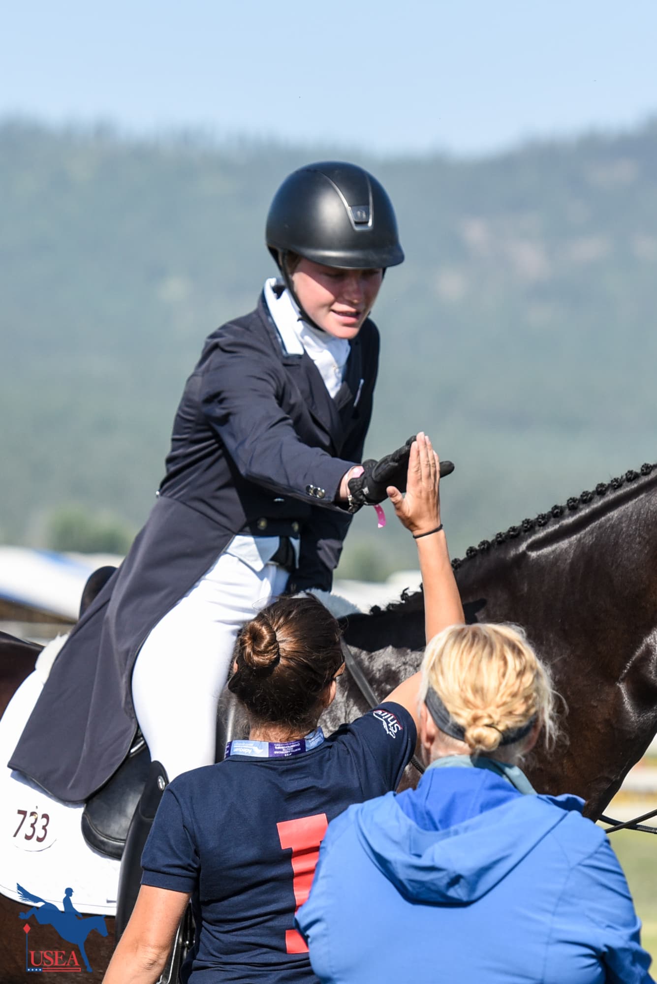 “A lot of people think that since the horses have done four-stars they’re easy to ride, but they’re actually really hard,” explained Olivia Dutton, who is riding the syndicate owned Mr. Medicott. “These horses have so much experience and they teach us so well. I’m having a lot of fun learning from Cave.” Dutton rode a consistent test with Mr. Medicott, earning a 34.1 for Area II, and sit in sixth place individually. “It’s taken me a bit to learn what buttons to push, but he really listened to me today. I thought he was going to be really strong, but he came back to me and I was happy. He was perfect.”