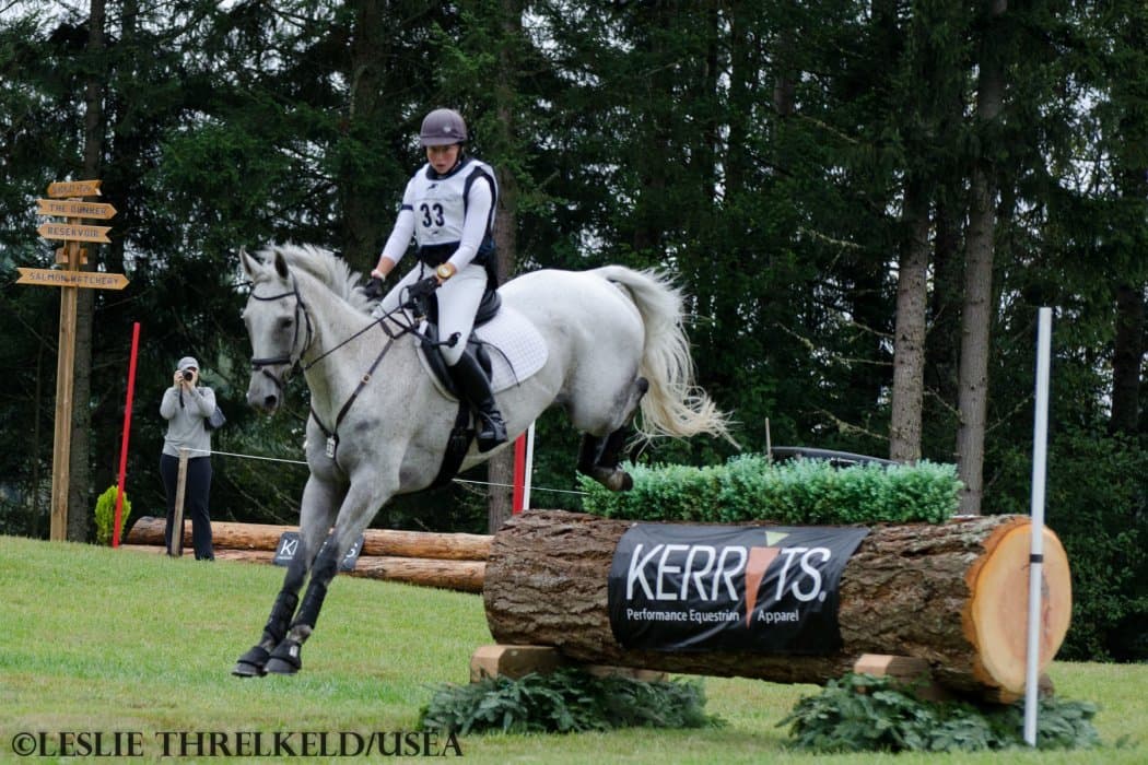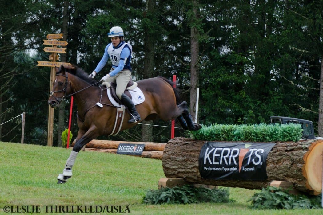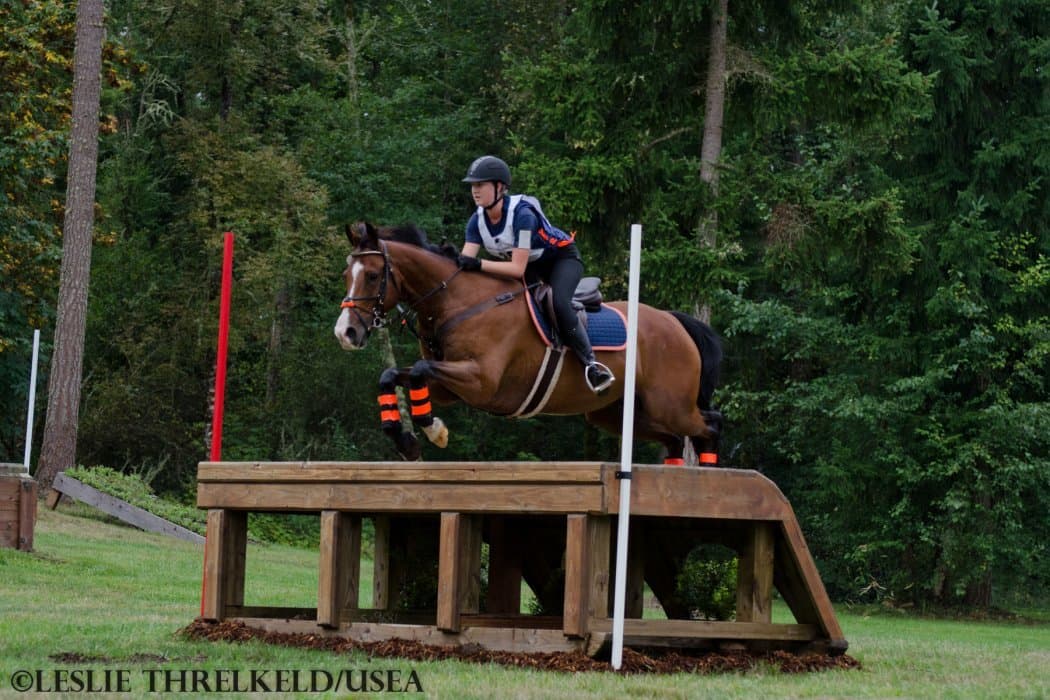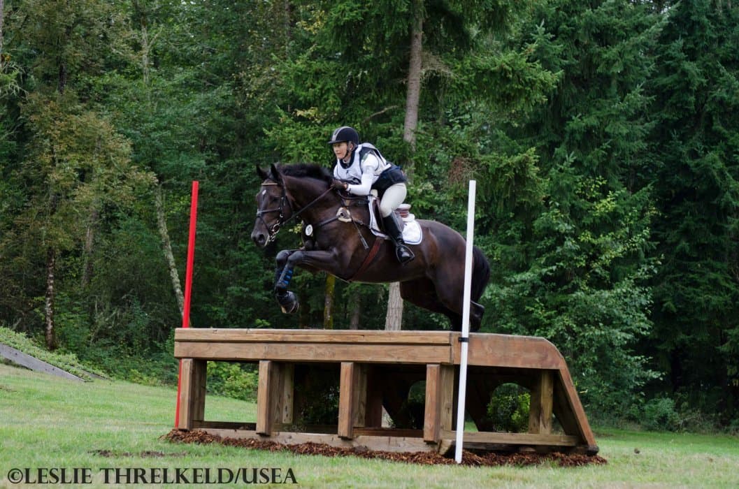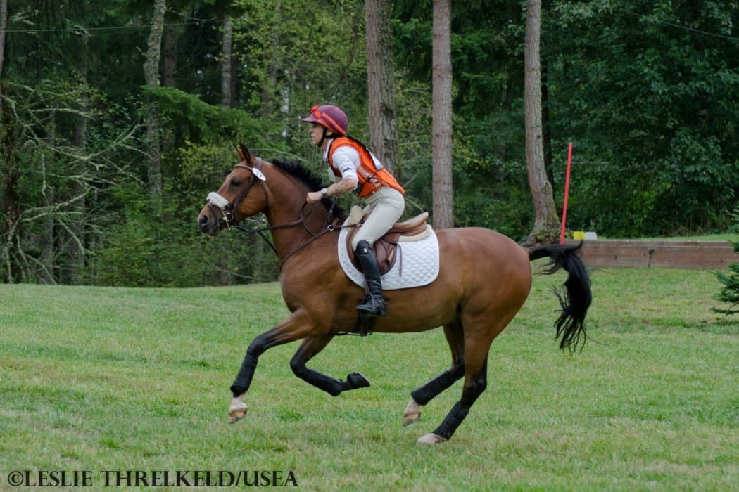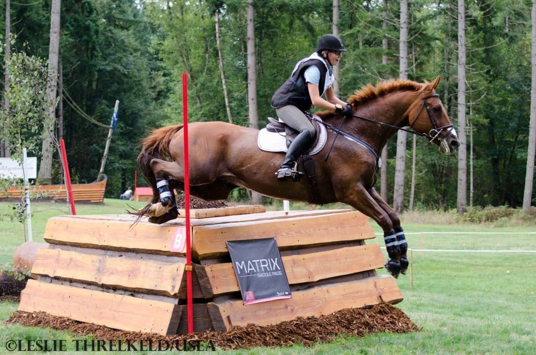 The Natural Migrations Intermediate Championships proved to be a true test of skill, with eight of 15 starters completing the event. Additionally, only six navigated the undulating cross-country without jumping errors. The first several competitors to leave the start box were eliminated or retired by fence 10ab, a tricky narrow brush to a cabin; everyone breathed a sigh of relief when Leila Lucas and Othello became the first to cross the finish line. Maya Black, of Clinton, Washington, won the dressage phase with Doesn’t Play Fair, so she wore an orange pinney on cross-country to indicate her lead, as did every other division leader in the event. She and Dawn Dofelmier’s 7-year-old Holsteiner gelding ultimately became the only pair in the division to finish on their dressage score.