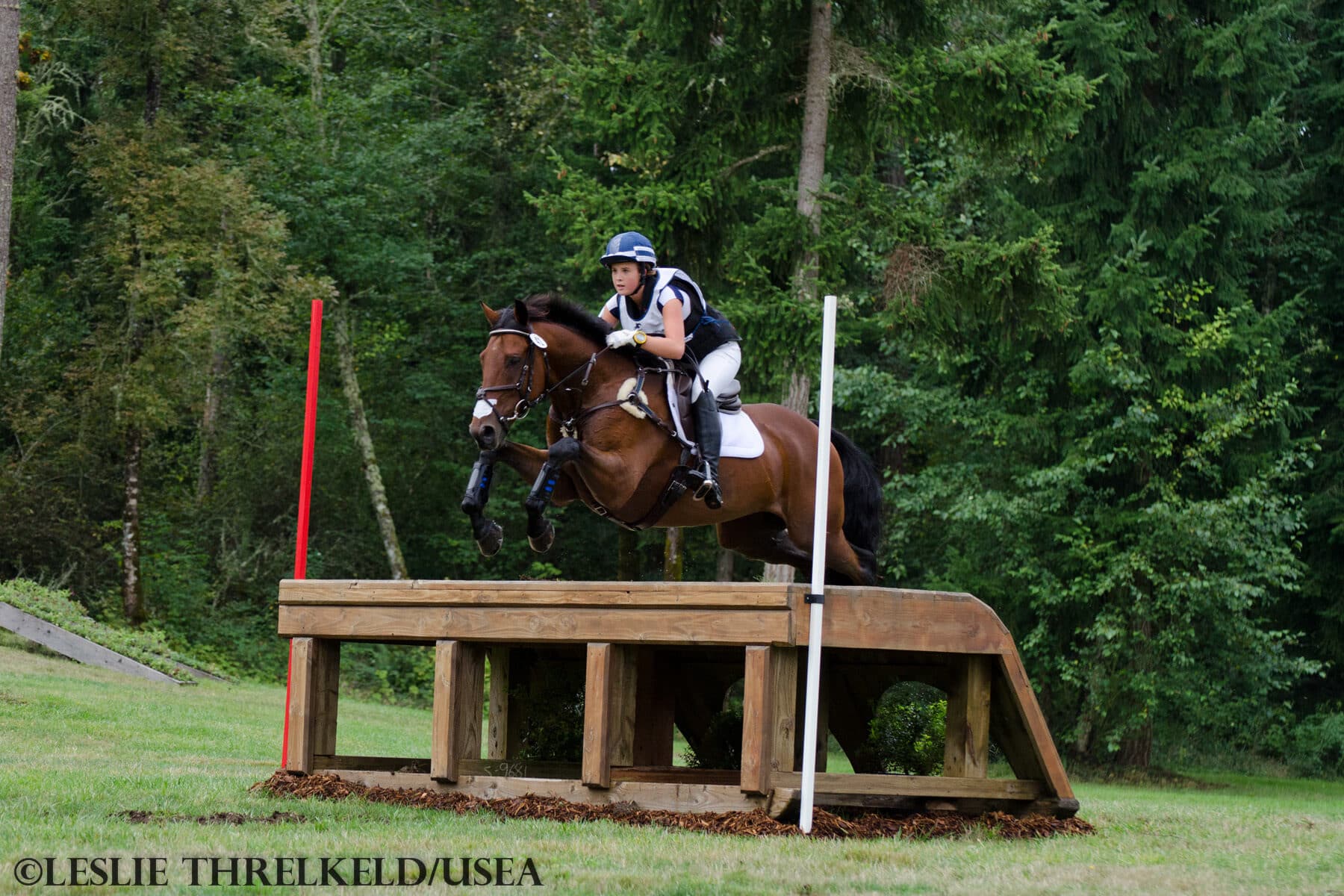 The results listing saw the most changes in the division you would probably least expect – the Beginner Novice Championship. While the cross-country posed few problems, Jonathan Elliot’s show jumping course, full of switchbacks and lead changes, separated the best from the rest. Kady Ellifritz, of Philomath, Oregon, and Dear Henry started cross-country in fourth place with a 32.5. By the end of the day, they had moved up one place. In the final phase, Kady and Megan Dearden’s 17-year-old Thoroughbred posted one of only four double-clear show jumping rounds, a performance that launched them into the winning position.
