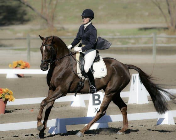 The liver chestnut Irish Sport horse was focused and expressive in his test to score a 41.0. “He’s definitely tuning in to the whole California experience,” said Springer, Marshall, Va., of the famously mercurial Arthur.