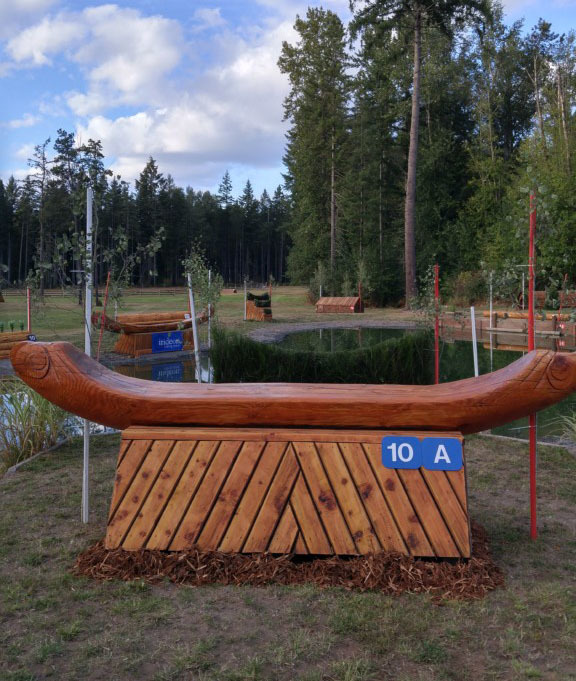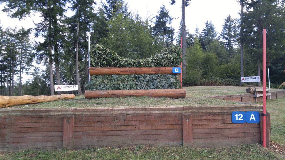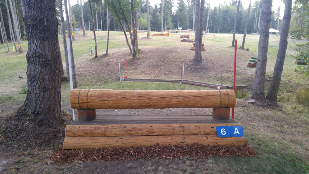 The first combination comes up at 6abc, a log (6a) followed by an incredibly steep slope to a ditch (6b) and out over a skinny log stack (6c), which is off to the right.